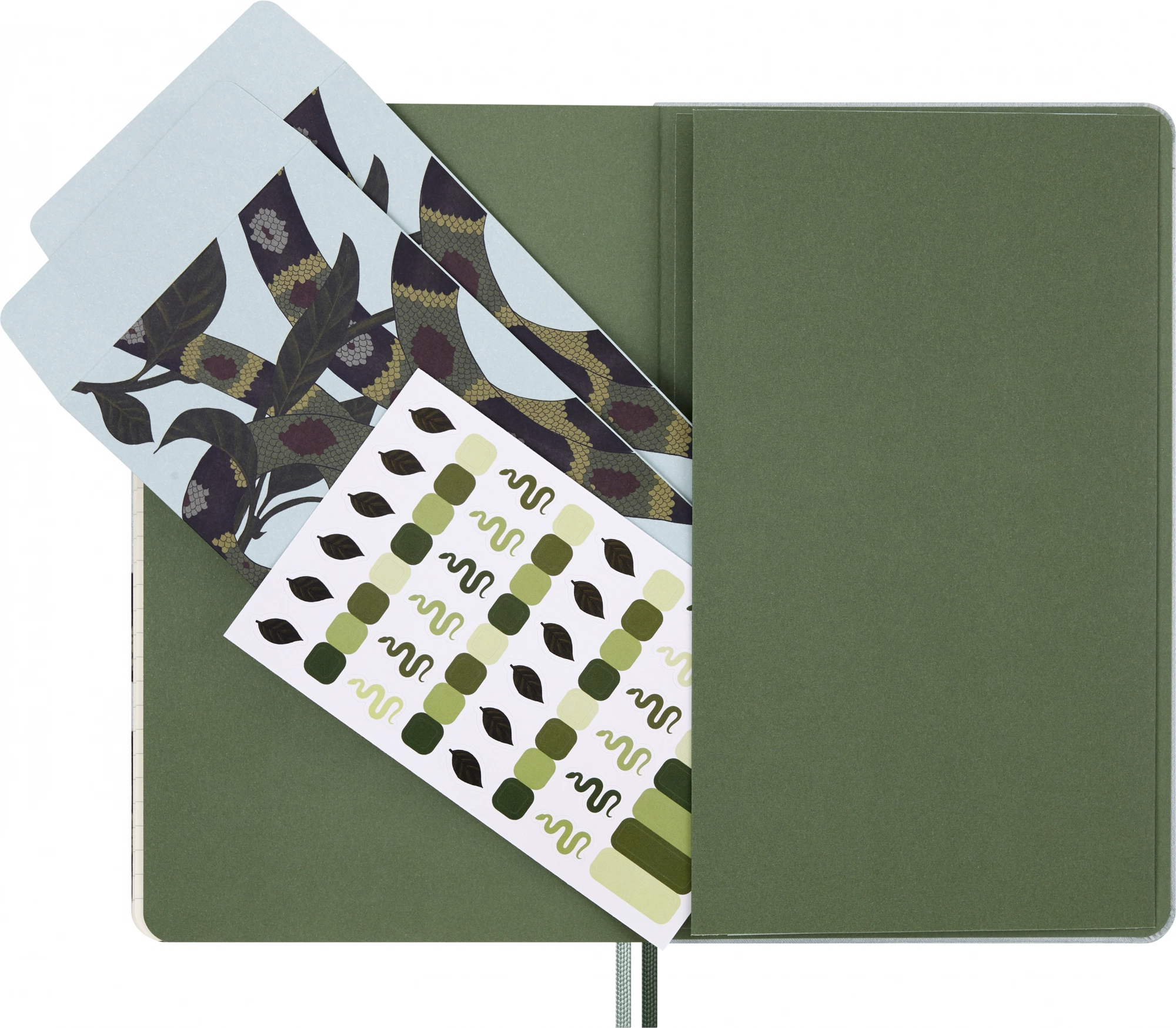 Этот блокнот Moleskine «Год Змеи» предлагается с 2 конвертами на счастье и набором тематических наклеек для персонализации заметок в течение года.