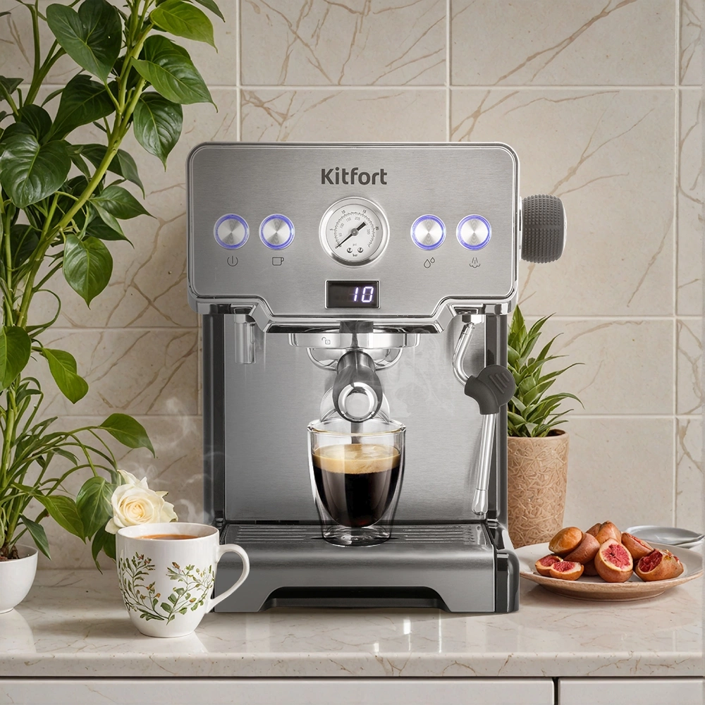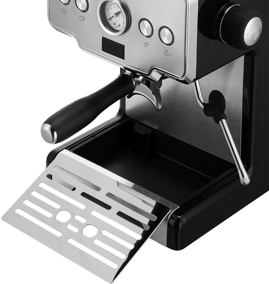 дисплей, капучинатор, манометр, панель для подогрева чашек, съемный поддон для капель, съемный резервуар для воды, темпер