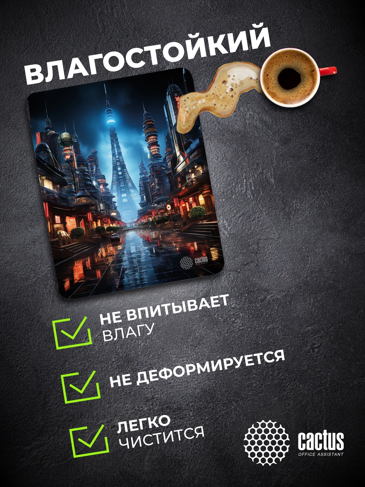 Коврик для мыши Cactus идеально подойдёт фанатам логических головоломок, квестов и стратегий. Он также будет полезен и пользователям офисных программ и графических редакторов, помогая более полно взаимодействовать с компьютерной мышью и точно позиционировать курсор.