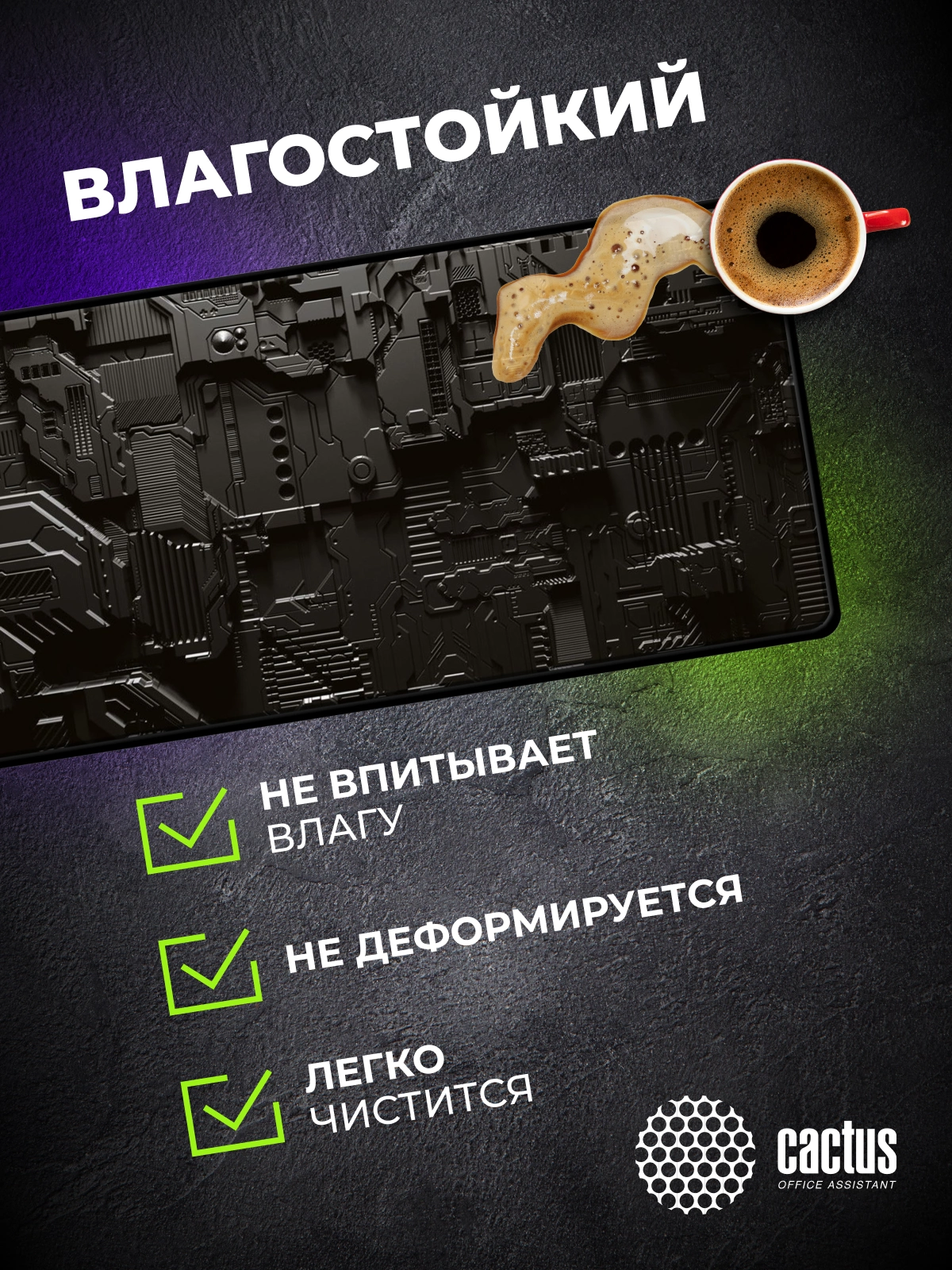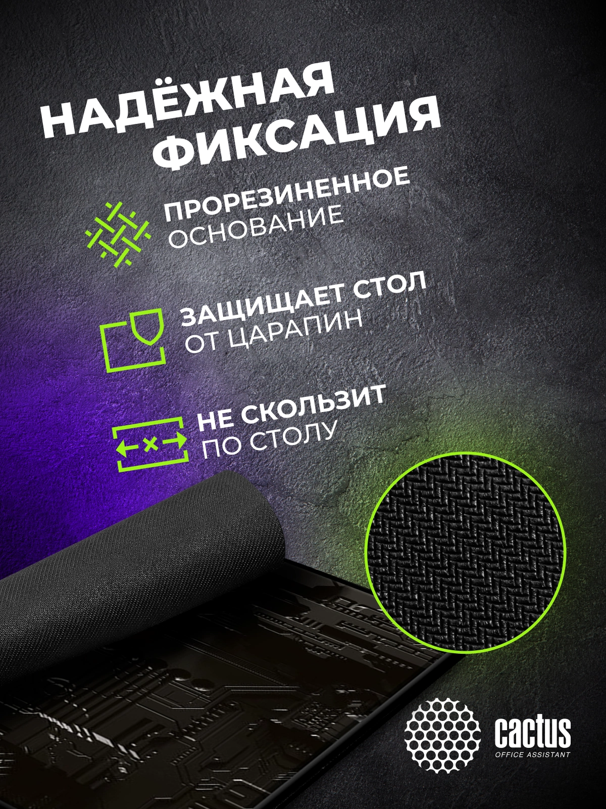 Коврик для мыши Cactus серии Professional предназначен в первую очередь для профессиональных геймеров. Большой размер коврика 900х400мм позволяет расположить на нём не только мышку, но и полноразмерную клавиатуру, предотвращая и её скольжение по рабочему столу, что обеспечивает ещё больший комфорт во время игрового процесса. Размера ковра хватит на все ваши действия! И не нужно больше думать о том, что коврик может неожиданно закончиться и сенсор мыши соскользнёт и не считается.