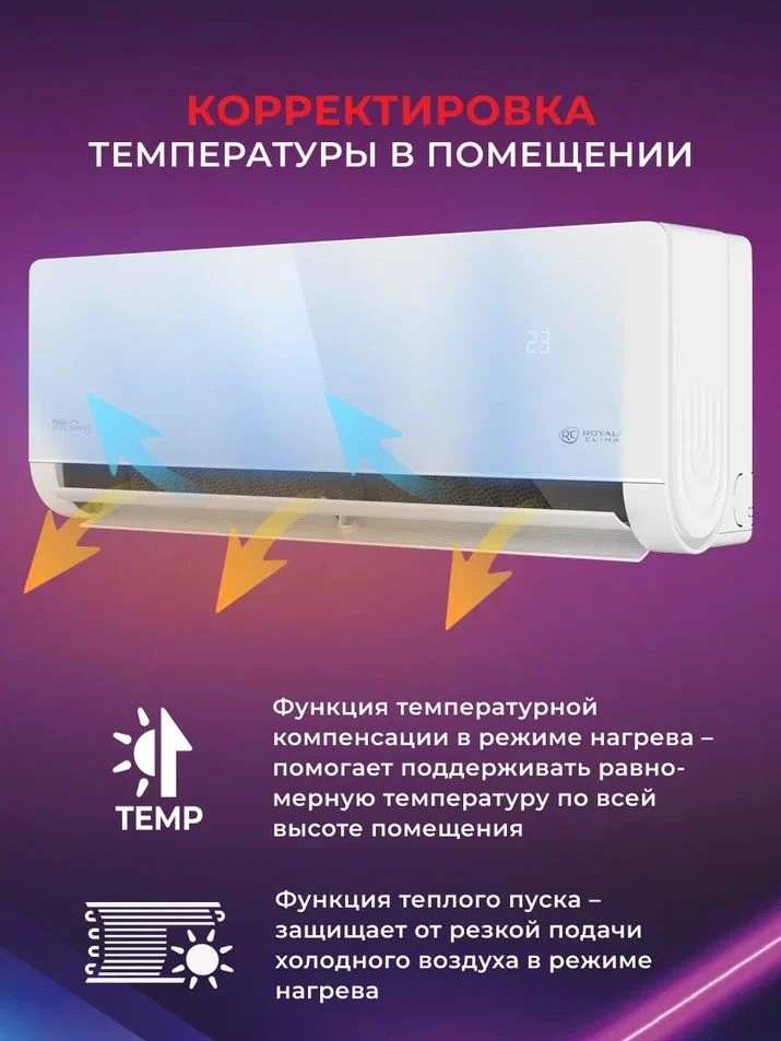 бесшумная работа, режим размораживания внешнего блока, турбо режим