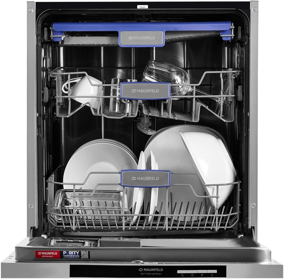 звуковой сигнал, луч на полу, наличия ополаскивателя, наличия соли
