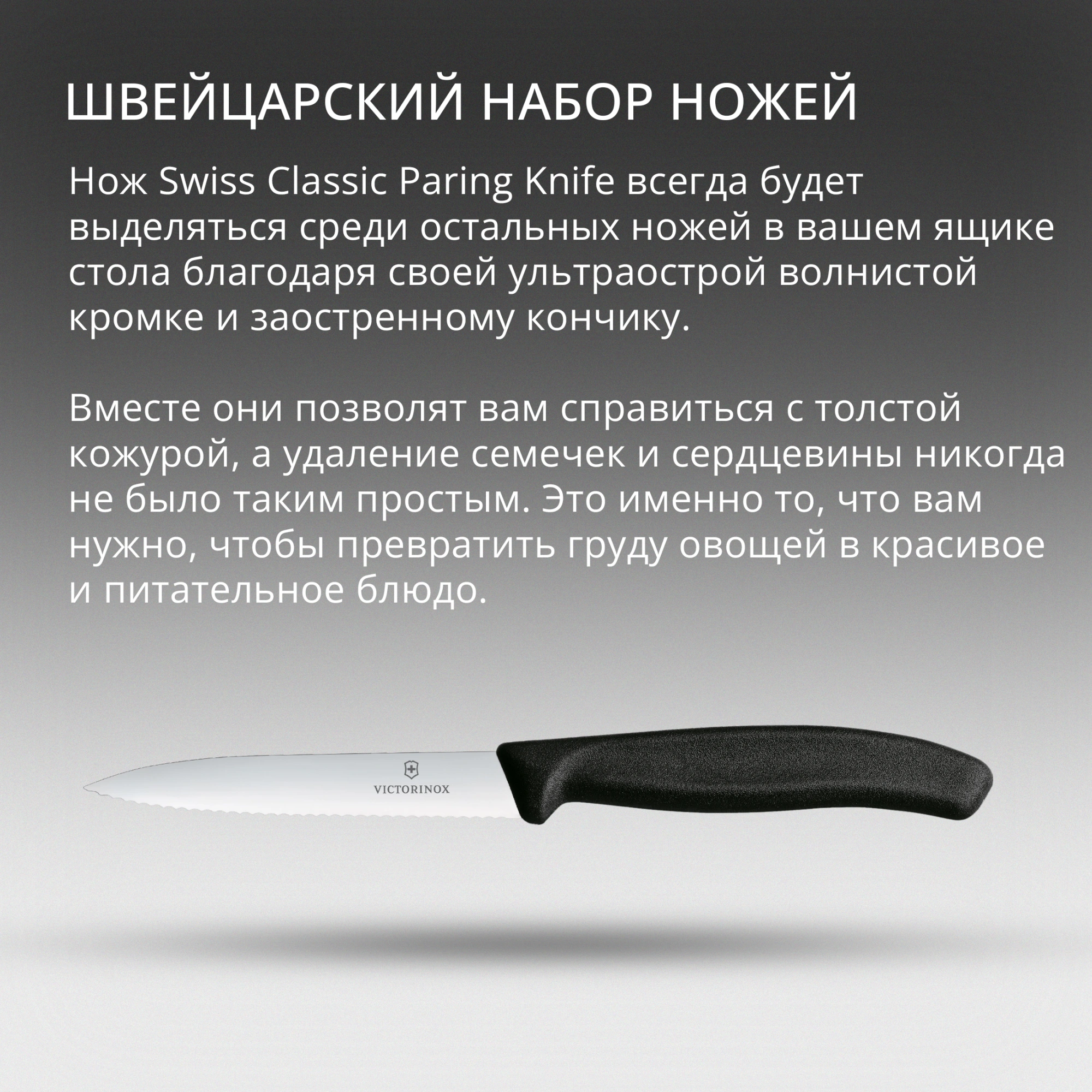 Нож Swiss Classic Paring Knife всегда будет выделяться среди остальных ножей в вашем ящике стола благодаря своей ультраострой волнистой кромке и заостренному кончику. Вместе они позволят вам справиться с толстой кожурой, а удаление семечек и сердцевины никогда не было таким простым. Это именно то, что вам нужно, чтобы превратить груду овощей в красивое и питательное блюдо.