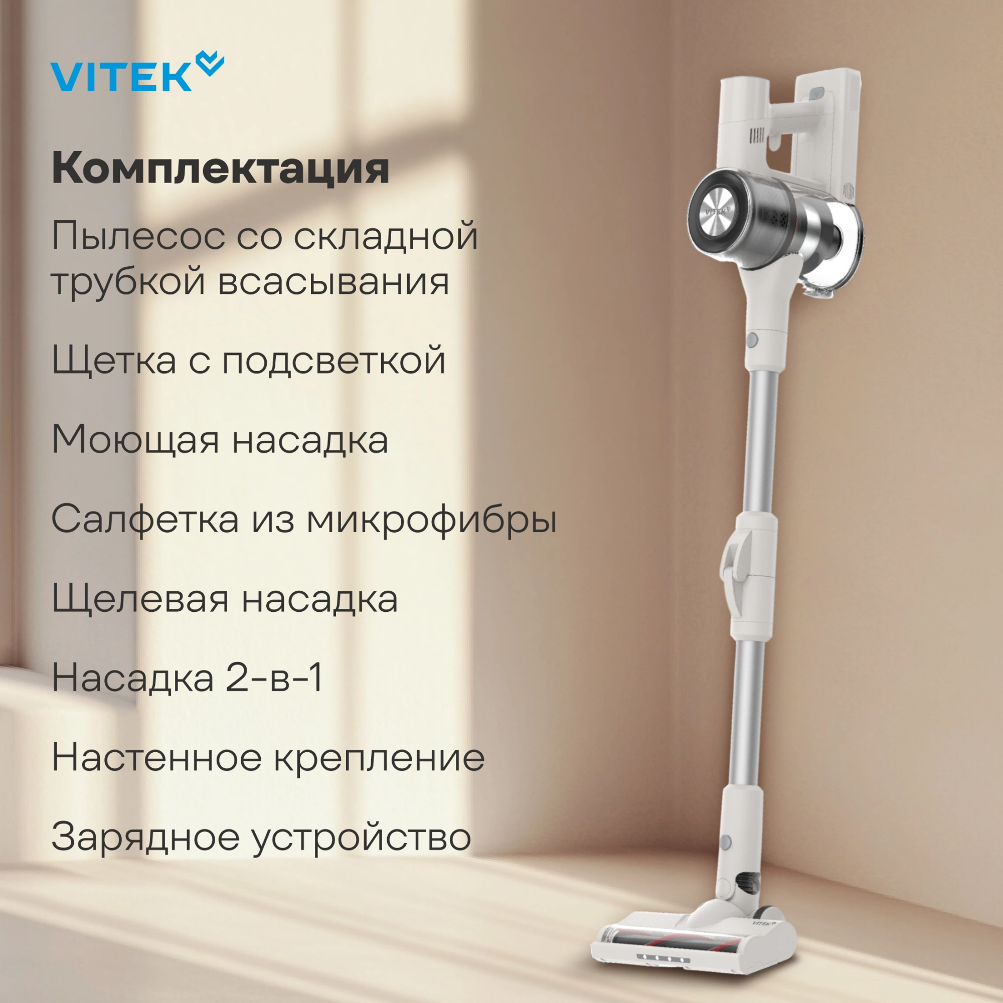 легко очищаемый пылесборник, место для хранения насадок, настенное крепление, подсветка зоны уборки