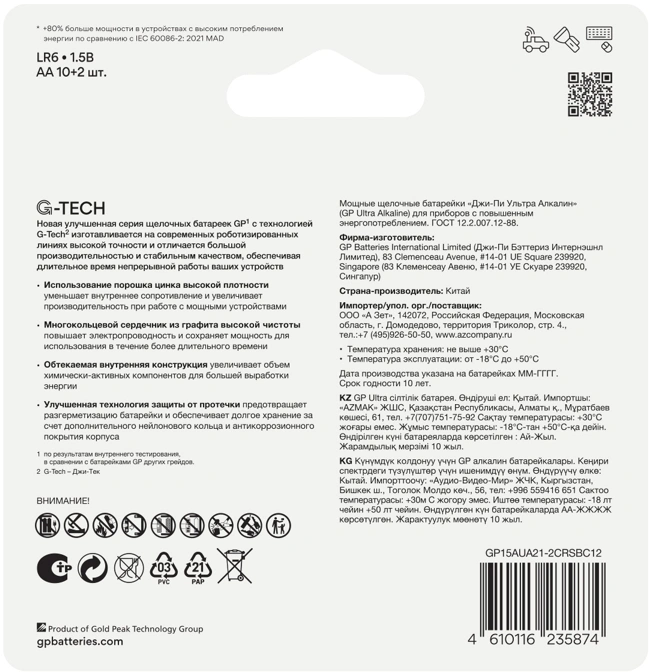 Батарея GP Ultra 15AUA21-2CRSBC12
