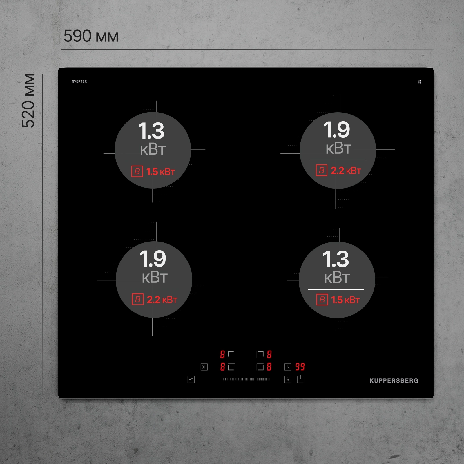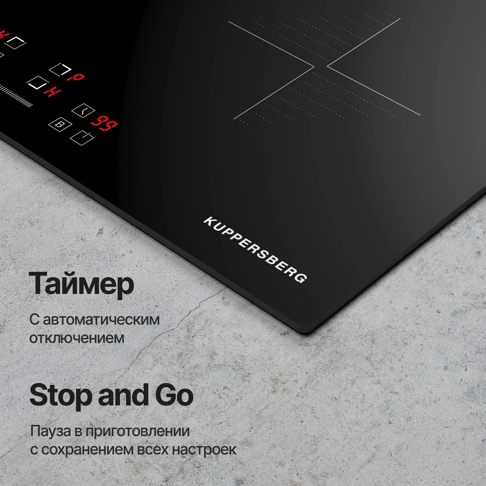 блокировка управления (защита от детей), защитное отключение, отключение при проливе жидкости, распознавание наличия посуды