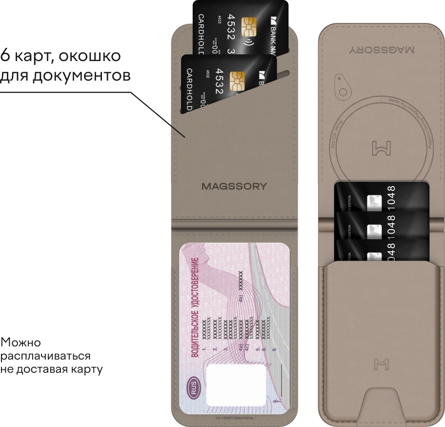 Вмещает до 6-ти пластиковых карт