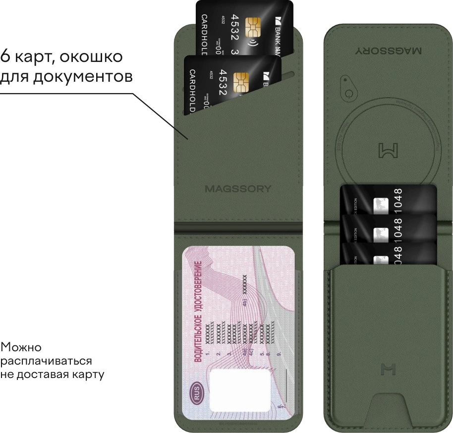 Вмещает до 6-ти пластиковых карт