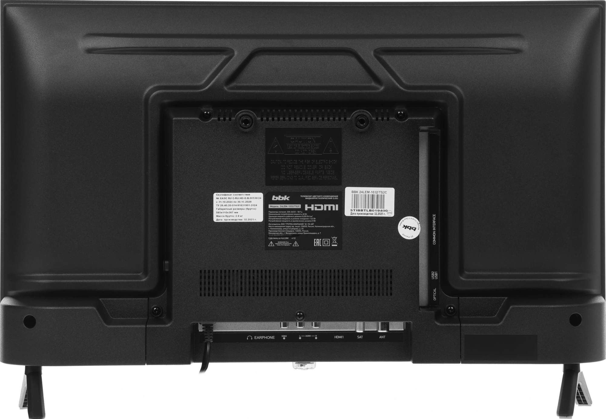 CI+/PCMCIA, HDMI, S/PDIF (оптический), USB Type-A, для наушников, композитный (видео), стерео-аудио