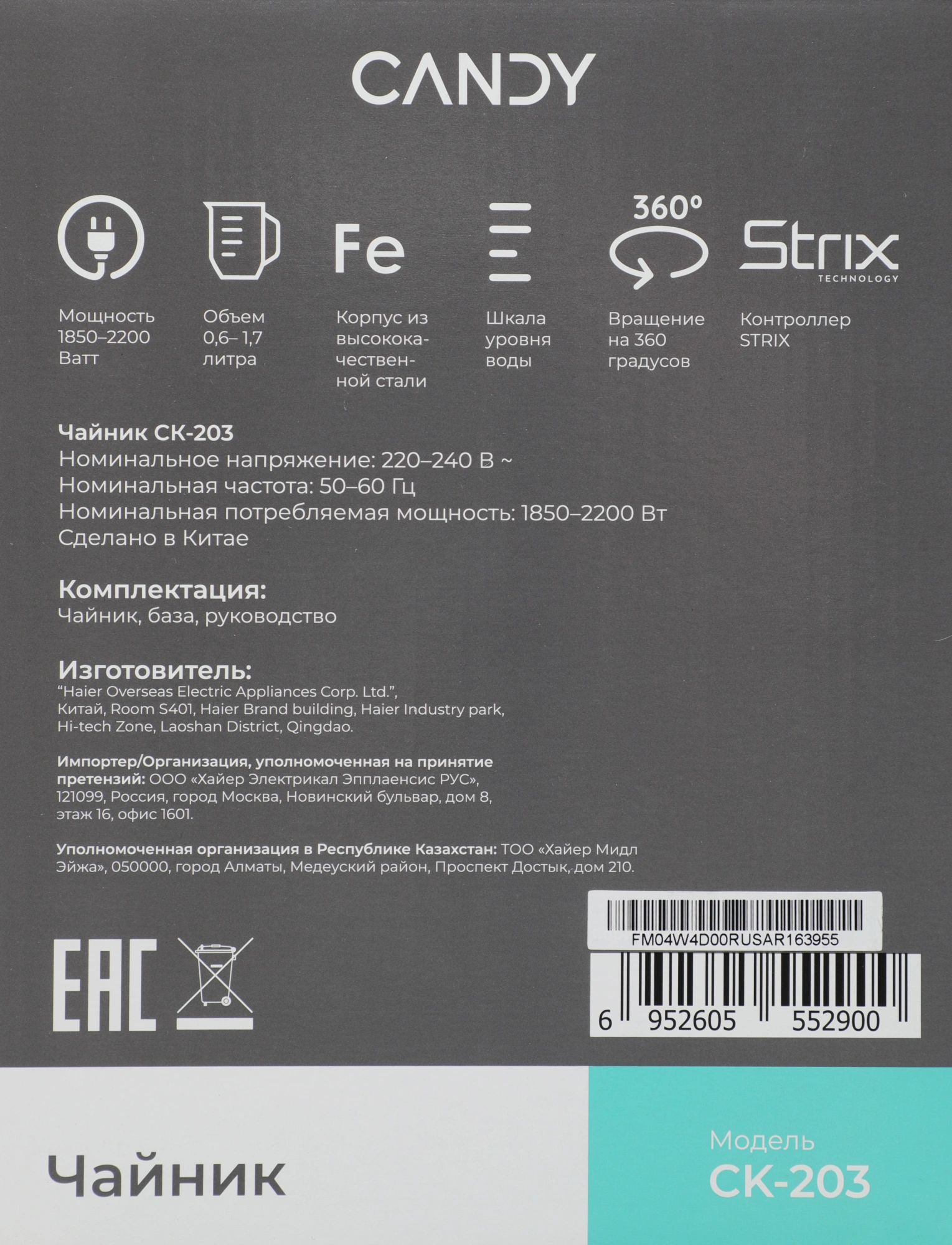 1.7л. 2200Вт графит корпус: нерж.сталь