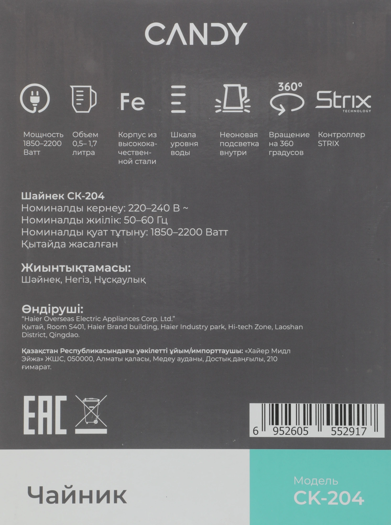 1.7л. 2200Вт графит корпус: нерж.сталь