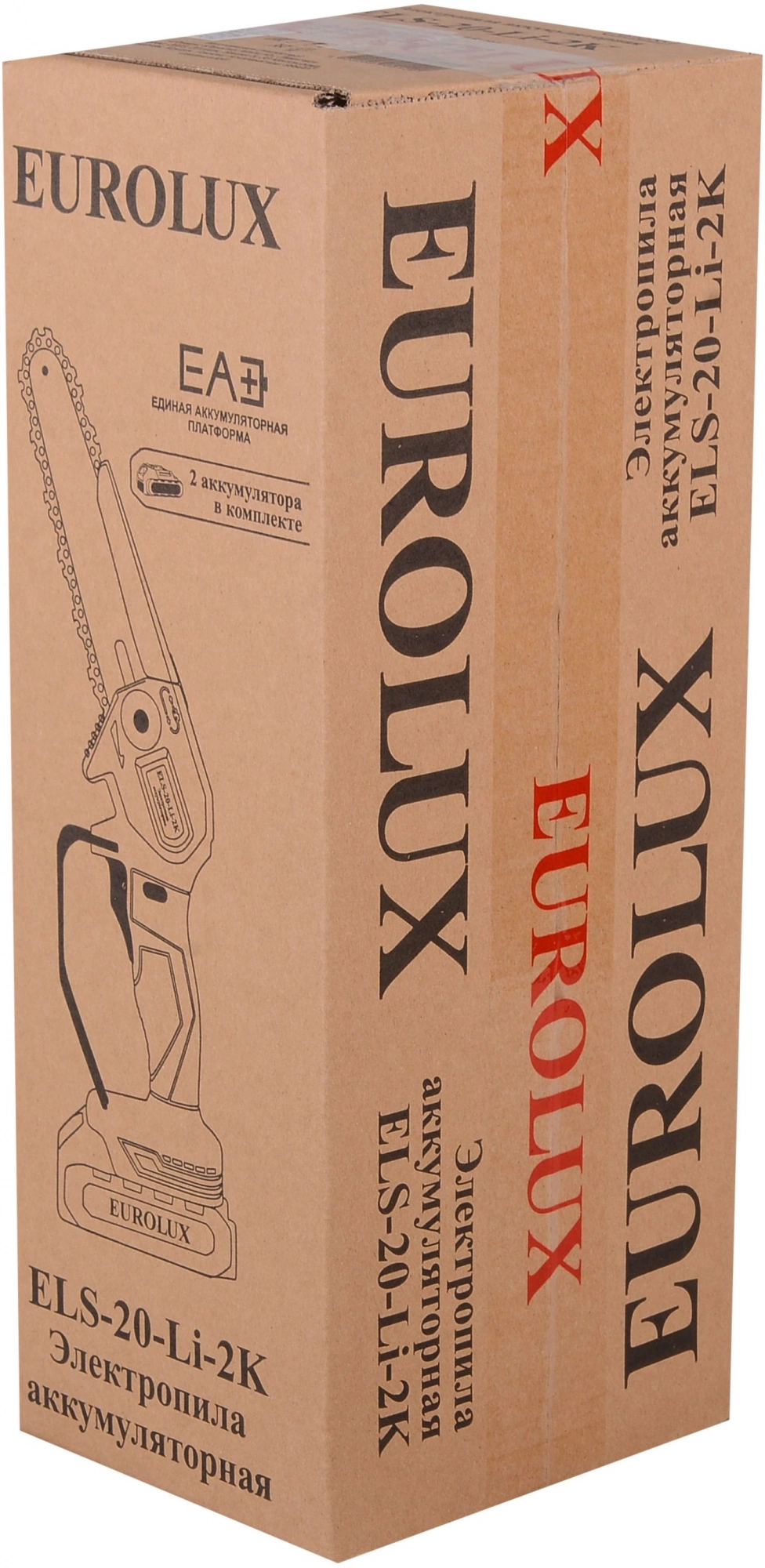 Электропила аккумуляторная — 1 шт, Шина — 1 шт, Цепь — 1 шт, Защитный чехол шины — 1 шт, Универсальный ключ (зависимости от модели) - 1 шт, Аккумулятор — 2 шт, Зарядное устройство - 1 шт, Руководство по эксплуатации.