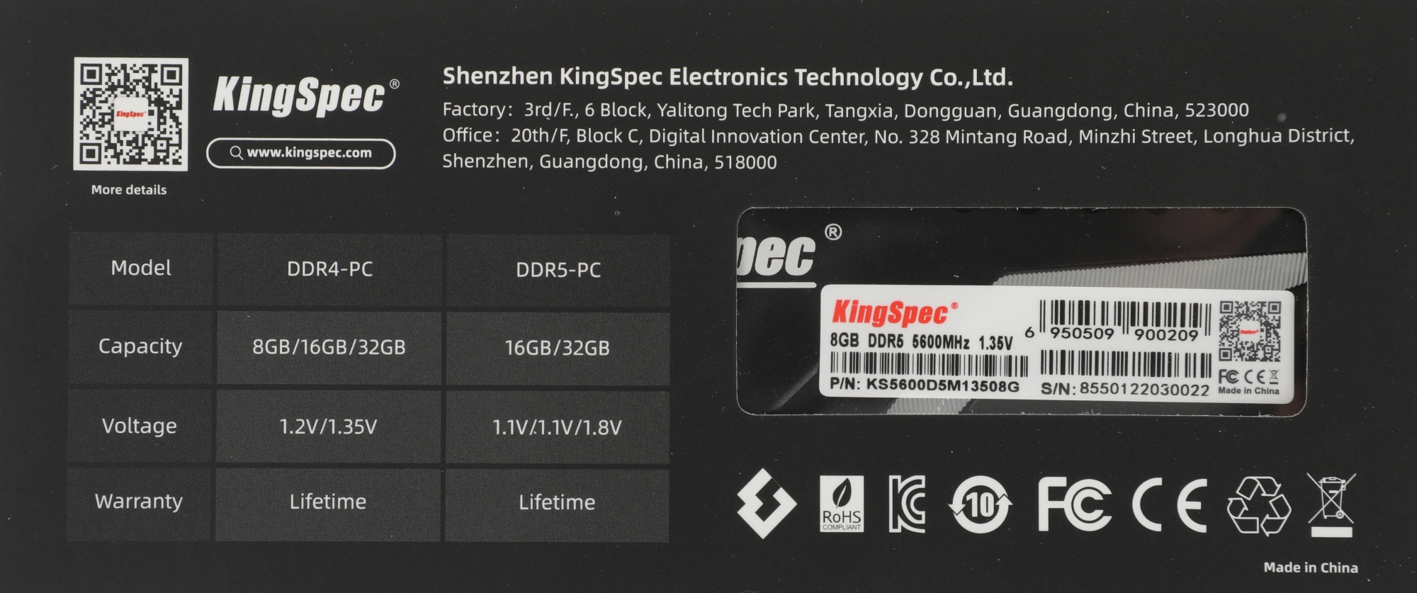 Память DDR5 8GB 5600MHz Kingspec KS5600D5M13508G