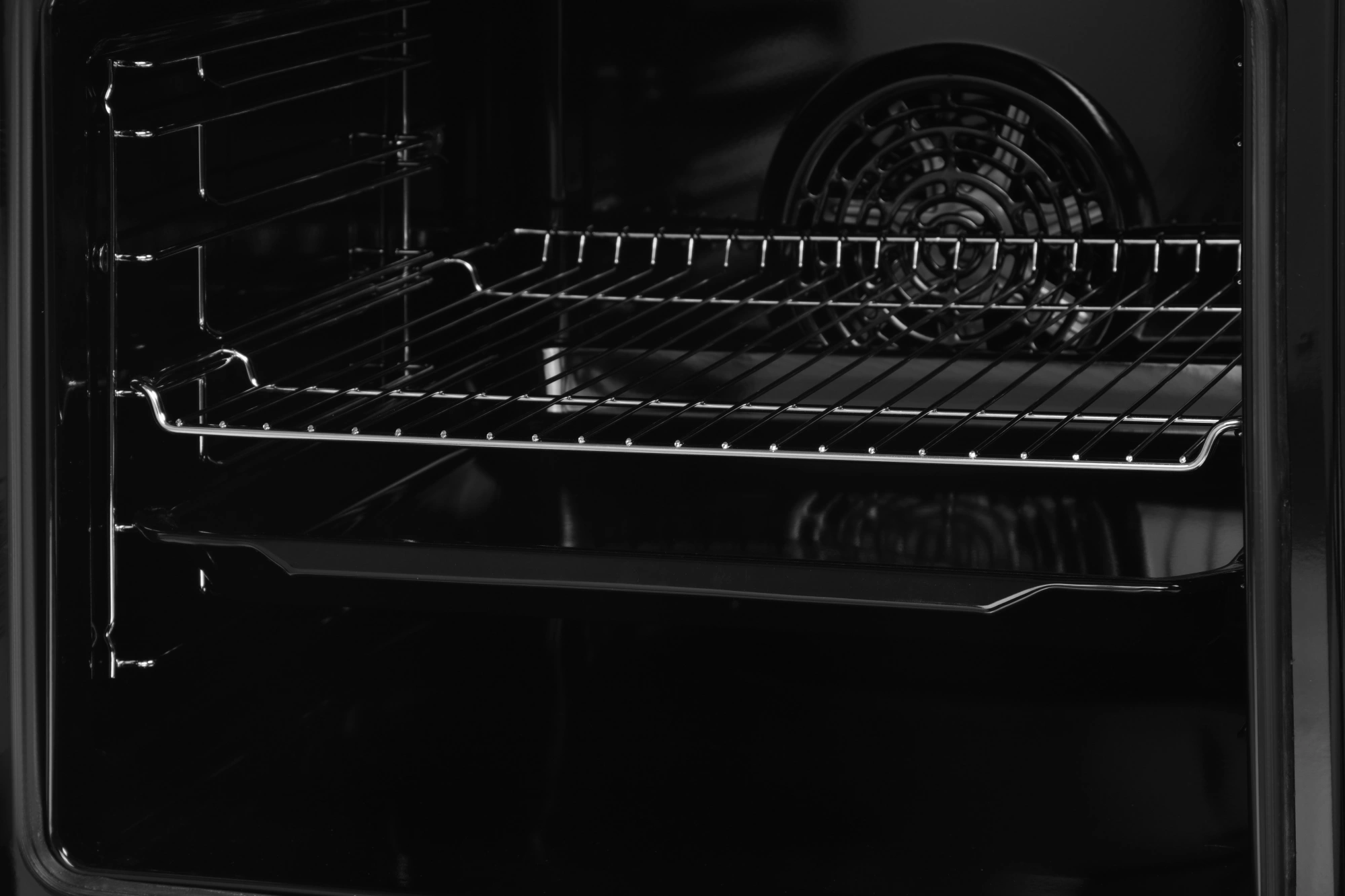 вентилятор охлаждения, полностью стеклянная внутренняя поверхность дверцы духовки, утапливаемые переключатели