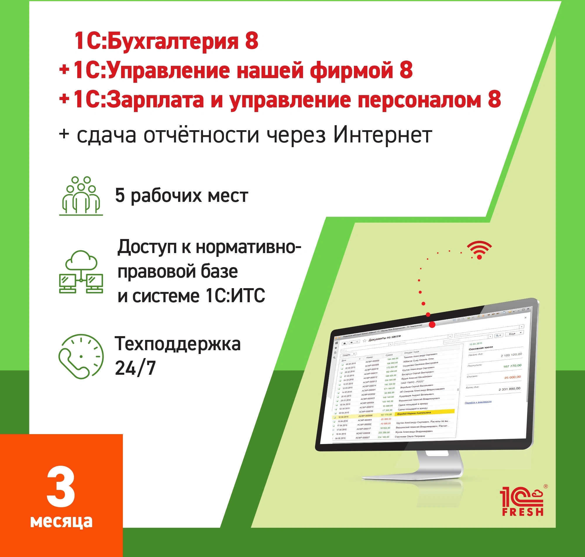Фреш 1С:Бухгалтерия + 1С:УНФ + 1С:ЗУП 8 + 1С-Отчетность, Профессиональный