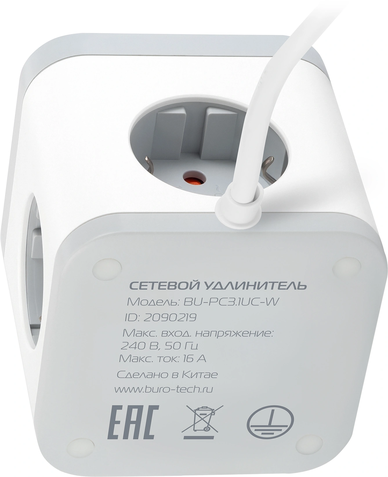 1.5м (3 розетки) белый (коробка)