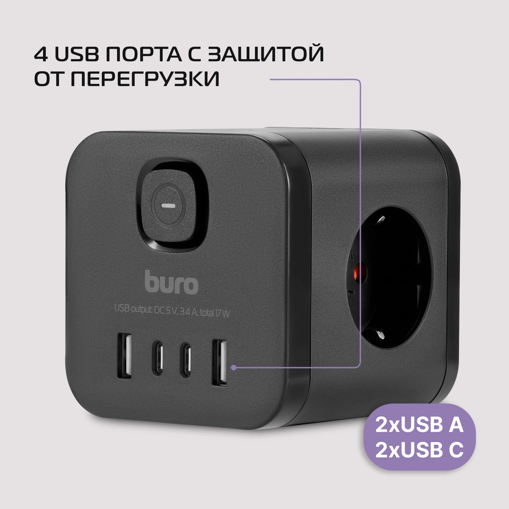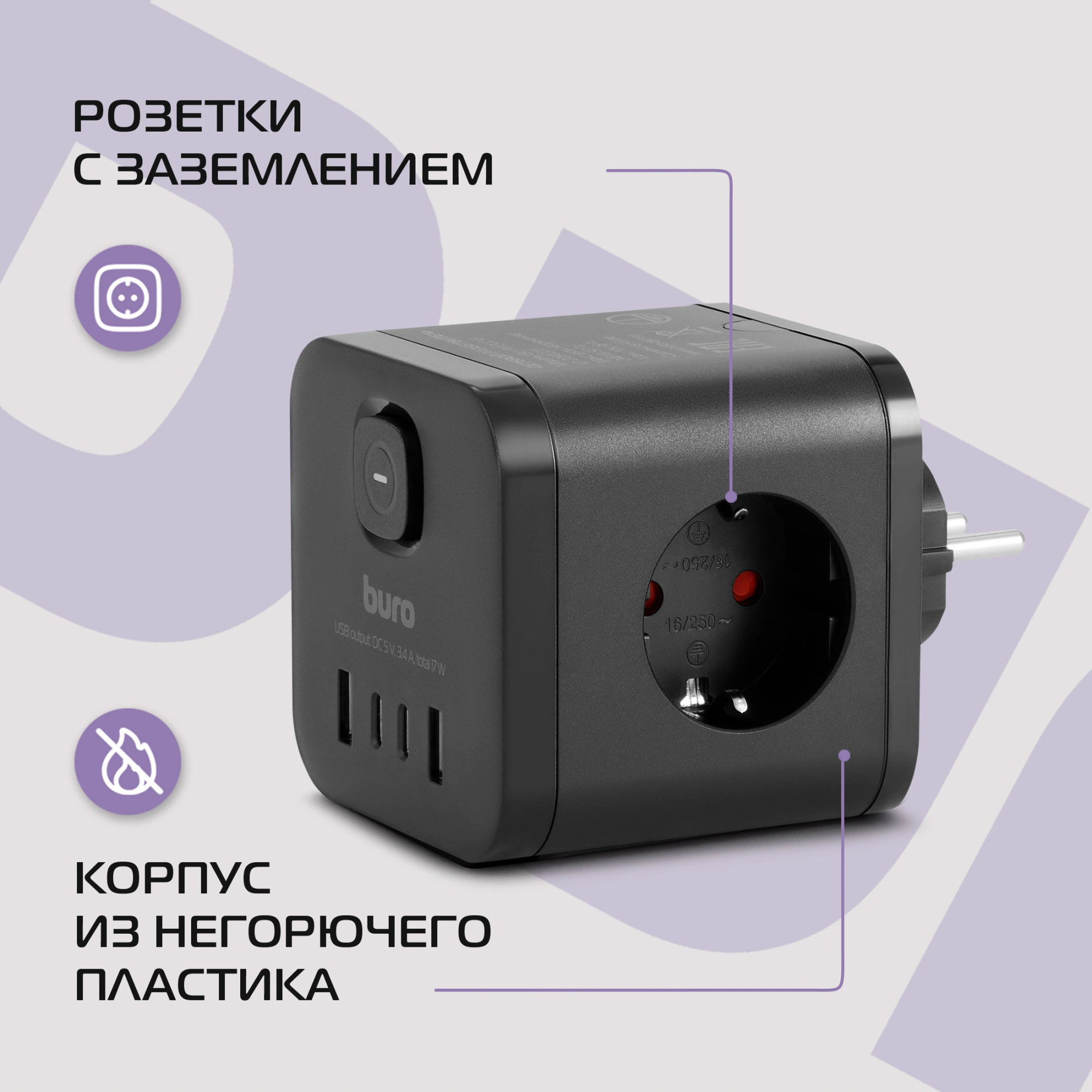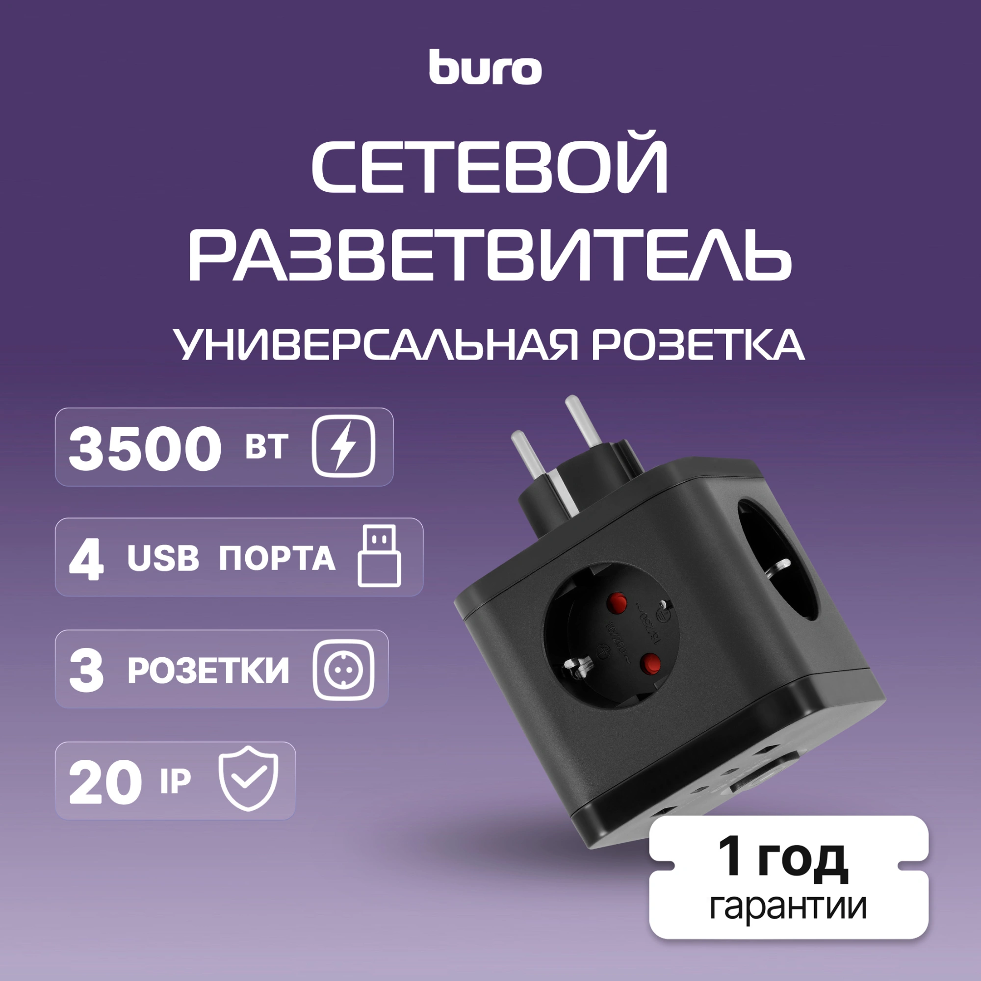 Сетевой разветвитель Buro BU-PW3UC-B