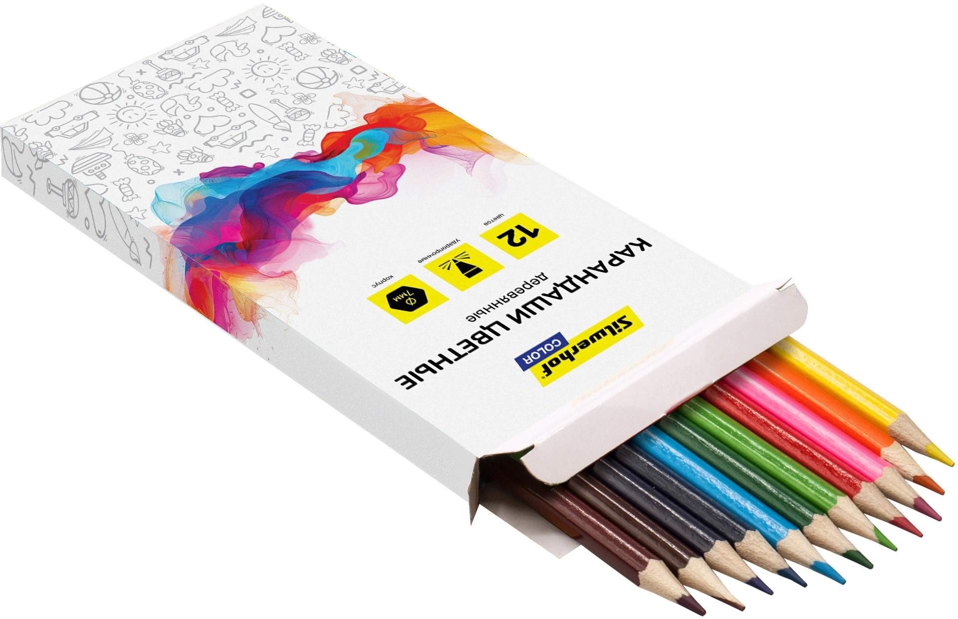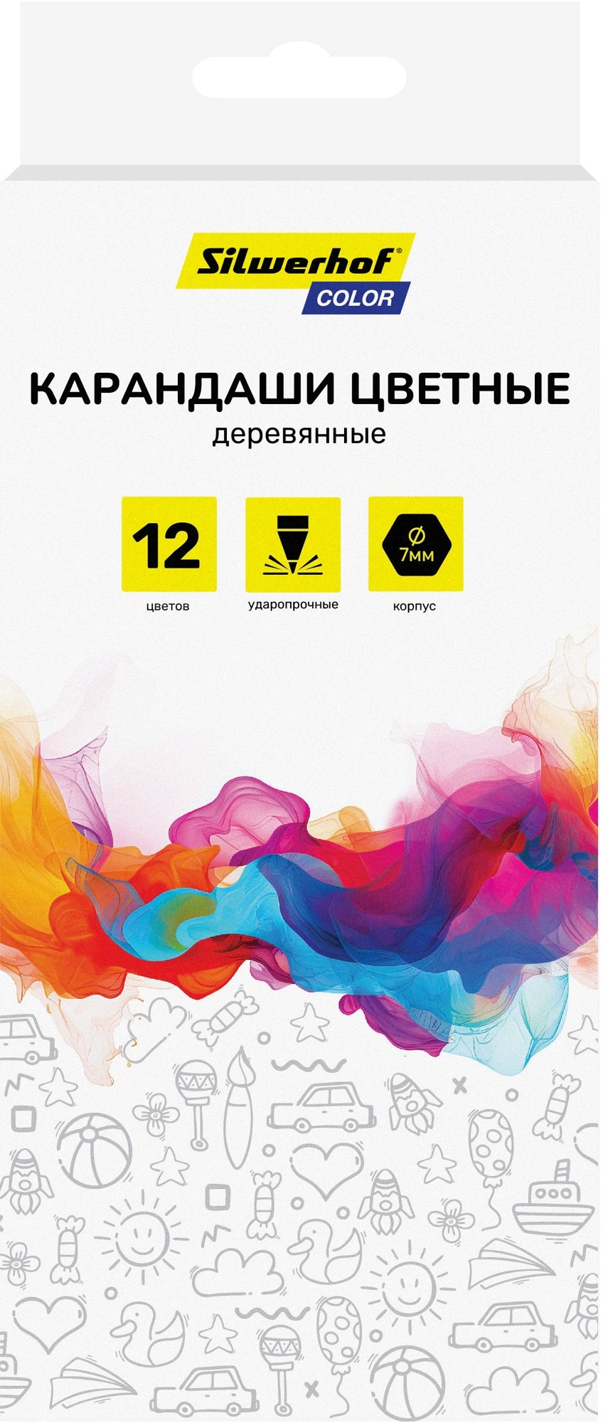 Карандаши цв. Silwerhof Color 2.8мм шестигран. дерево ассорти 12цв. коробка/европод.
