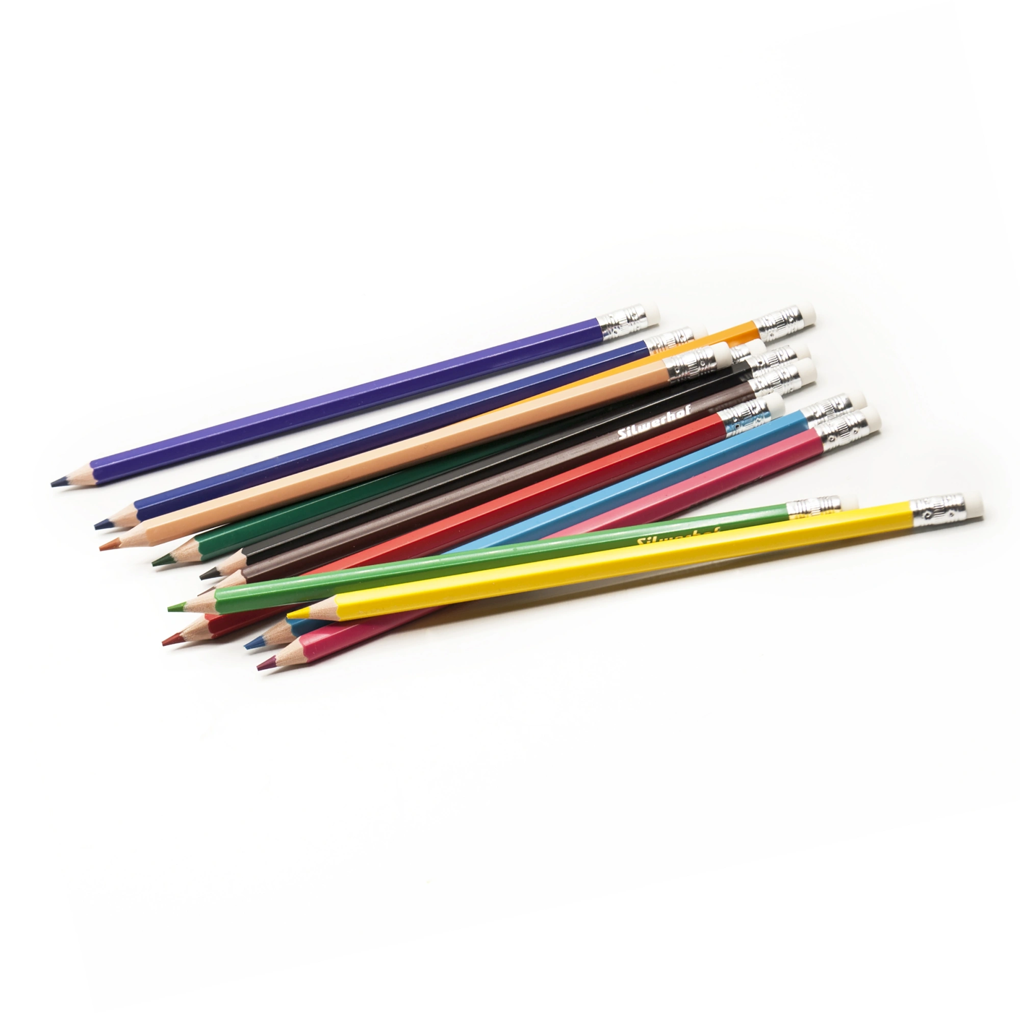 Карандаши цв. Silwerhof Create 3мм шестигран. пластик ассорти 12цв. коробка/европод. ластик