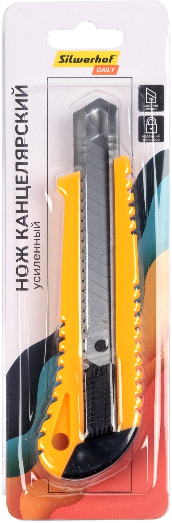 Нож канцелярский Silwerhof Daily шир.лез.18мм фиксатор усиленный пластик ассорти блистер