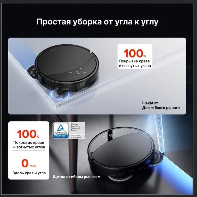 автоматический поиск зарядного устройства, построение карты помещения, распознавание ковров, уборка по расписанию