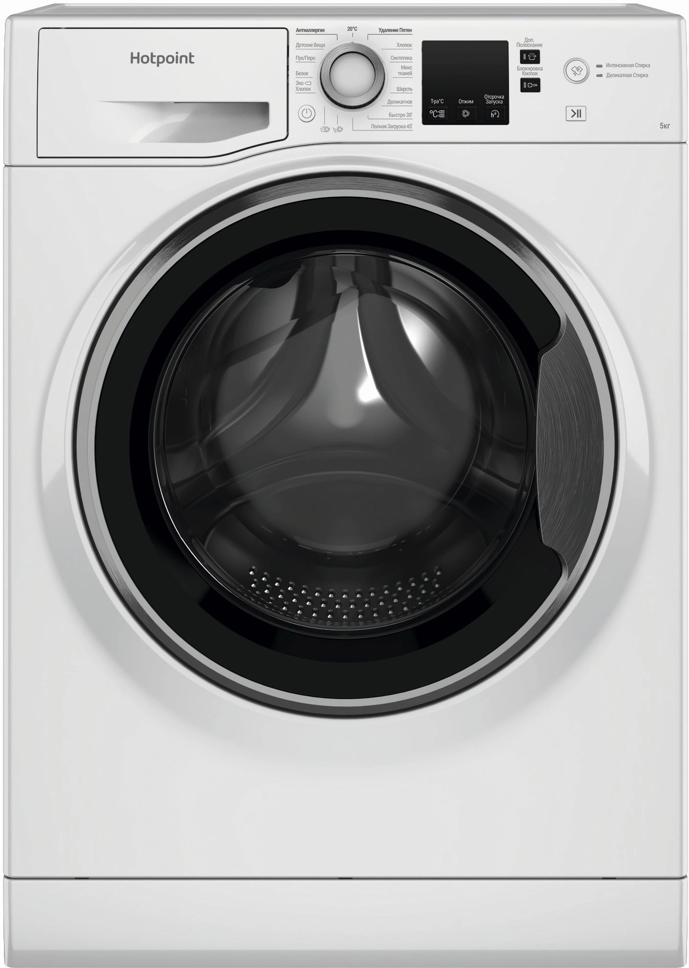 Интенсивная стирка, Деликатная стирка, Дополнительное полоскание, Отложенный запуск