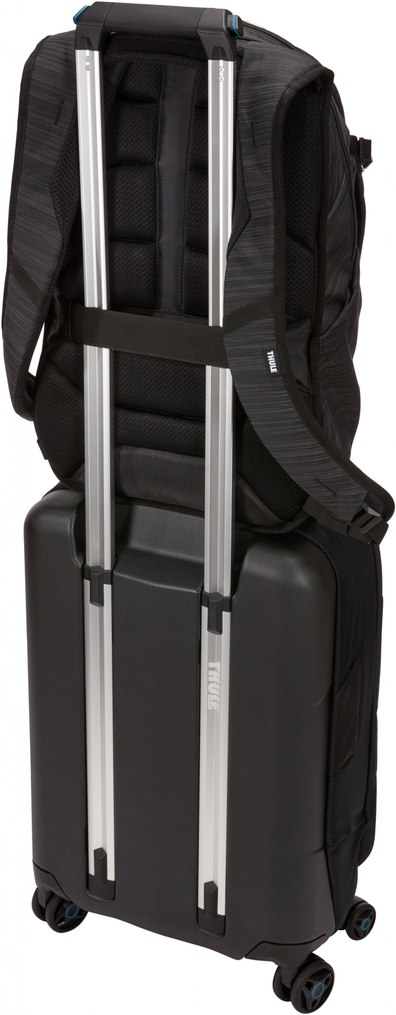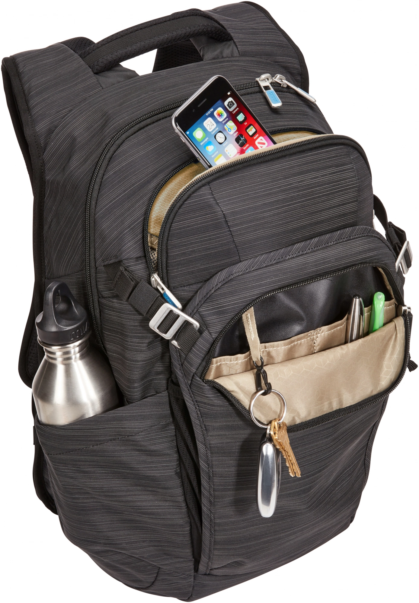 Рюкзак для работы и путешествий.Отделения для ноутбука до 15,6 и планшета до 10,5.Карманы: для телефона, органайзер, сетчатый на молнии, передний вертикальный, боковой на молнии и открытый для бутылки.Стягивающие ремни.Крепление к чемодану. Водостойкие материалы, металлические детали, молнии YKK.