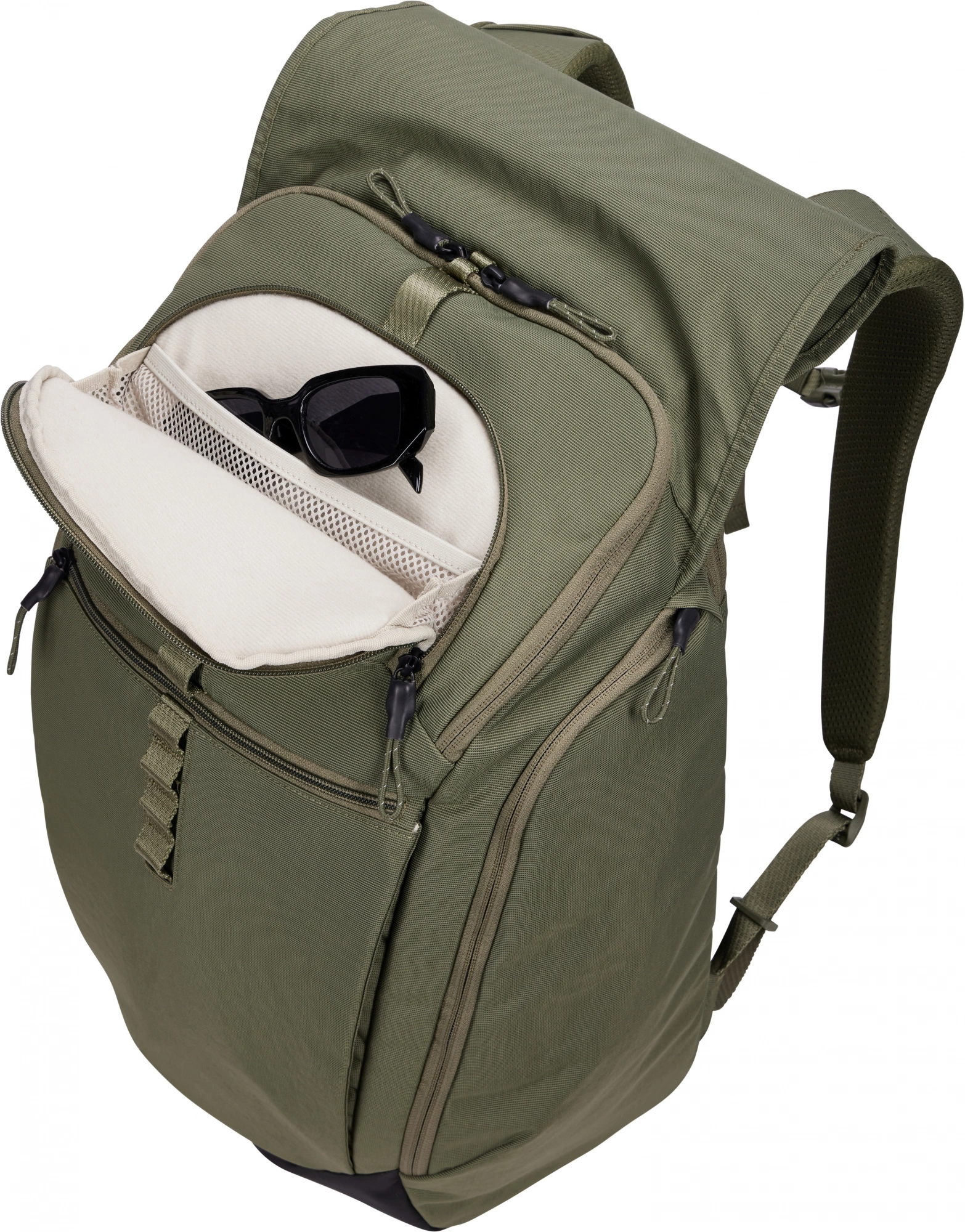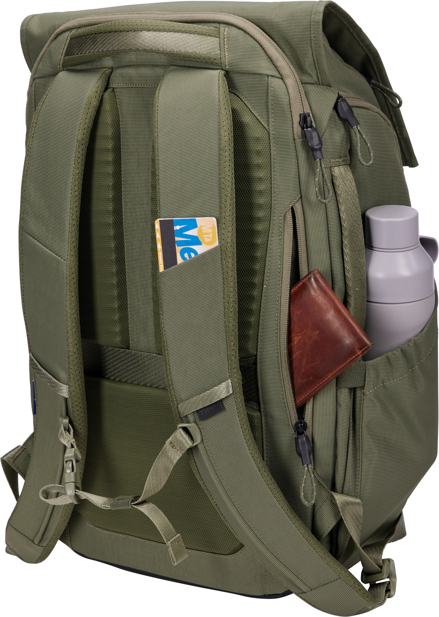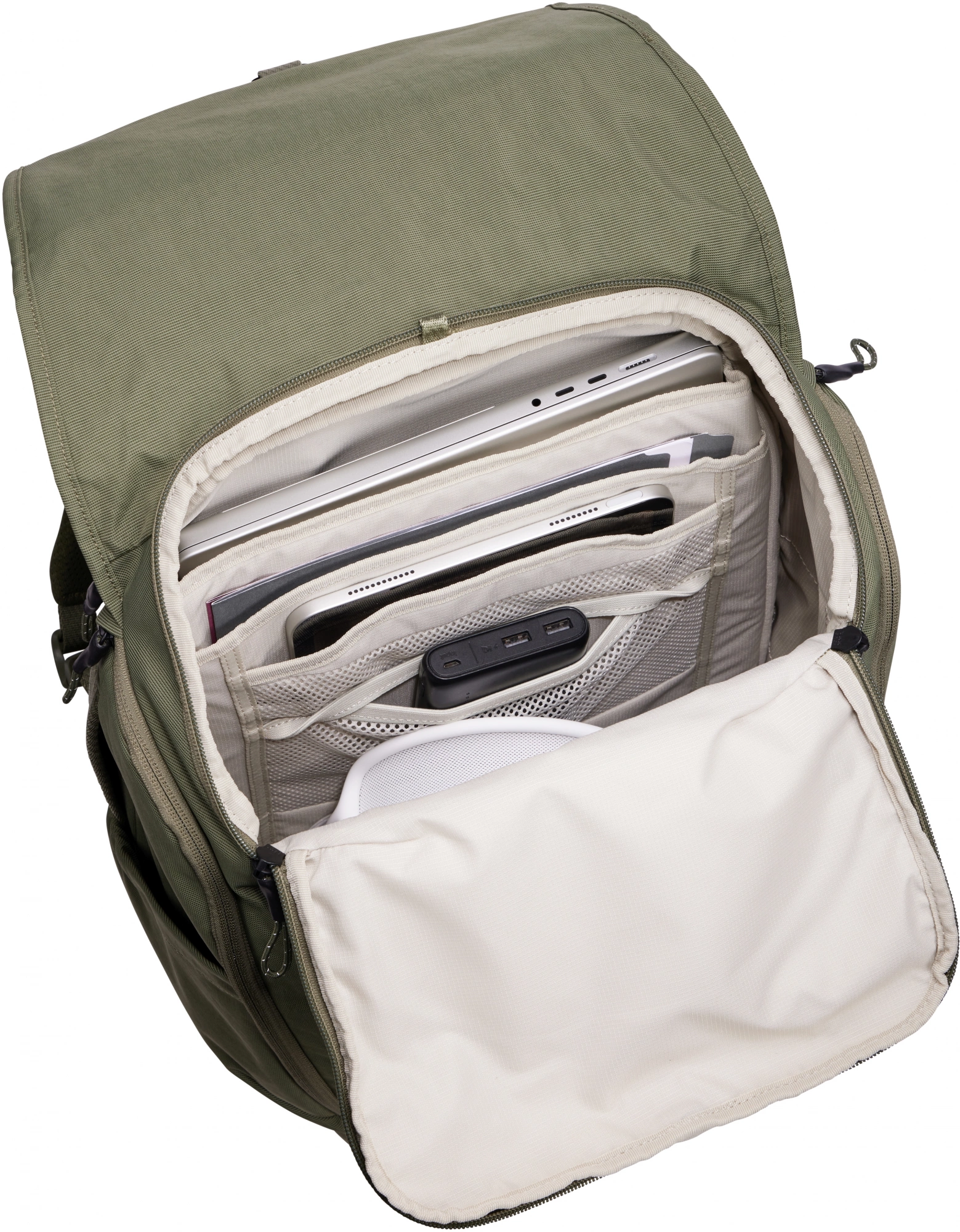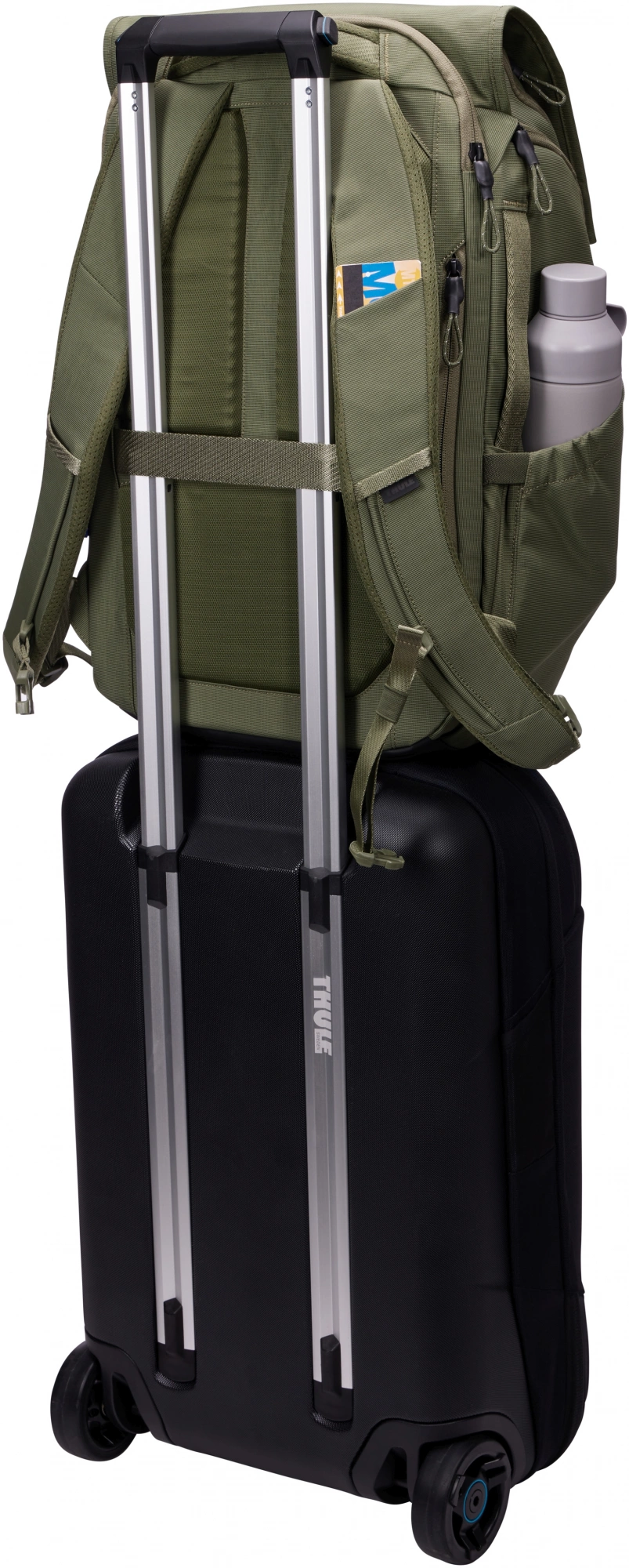 Рюкзак24л.Есть карман для ноутбука до 16 дюймов, карман из сетчатого материала и с твердой перегородкой. Задний карман на молнии, накладной карман на ремне, внешние карманы.Крепится к чемодану на колесиках с задней панелью для вентиляции, а также нагрудный ремень для стабилизации нагрузки.