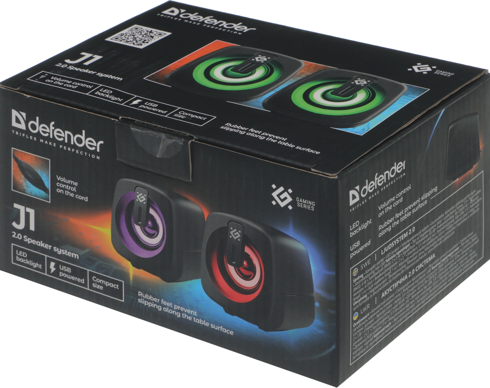 Компактные размеры. Светодиодная подсветка. Регулятор громкости на кабеле. Резиновые накладки предотвращают скольжение по поверхности стола. Питание от порта USB
