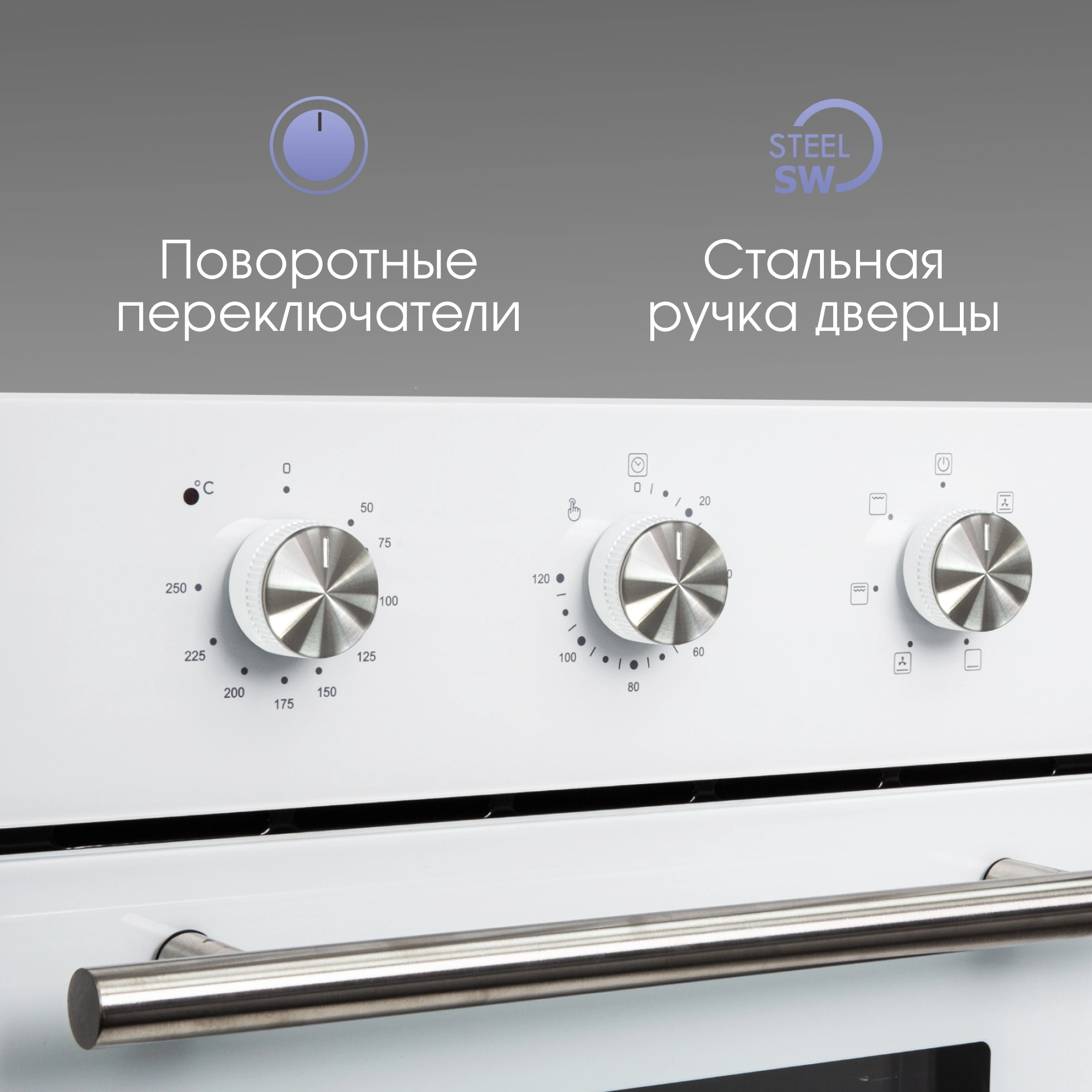 вентилятор охлаждения, полностью стеклянная внутренняя поверхность дверцы духовки, утапливаемые переключатели