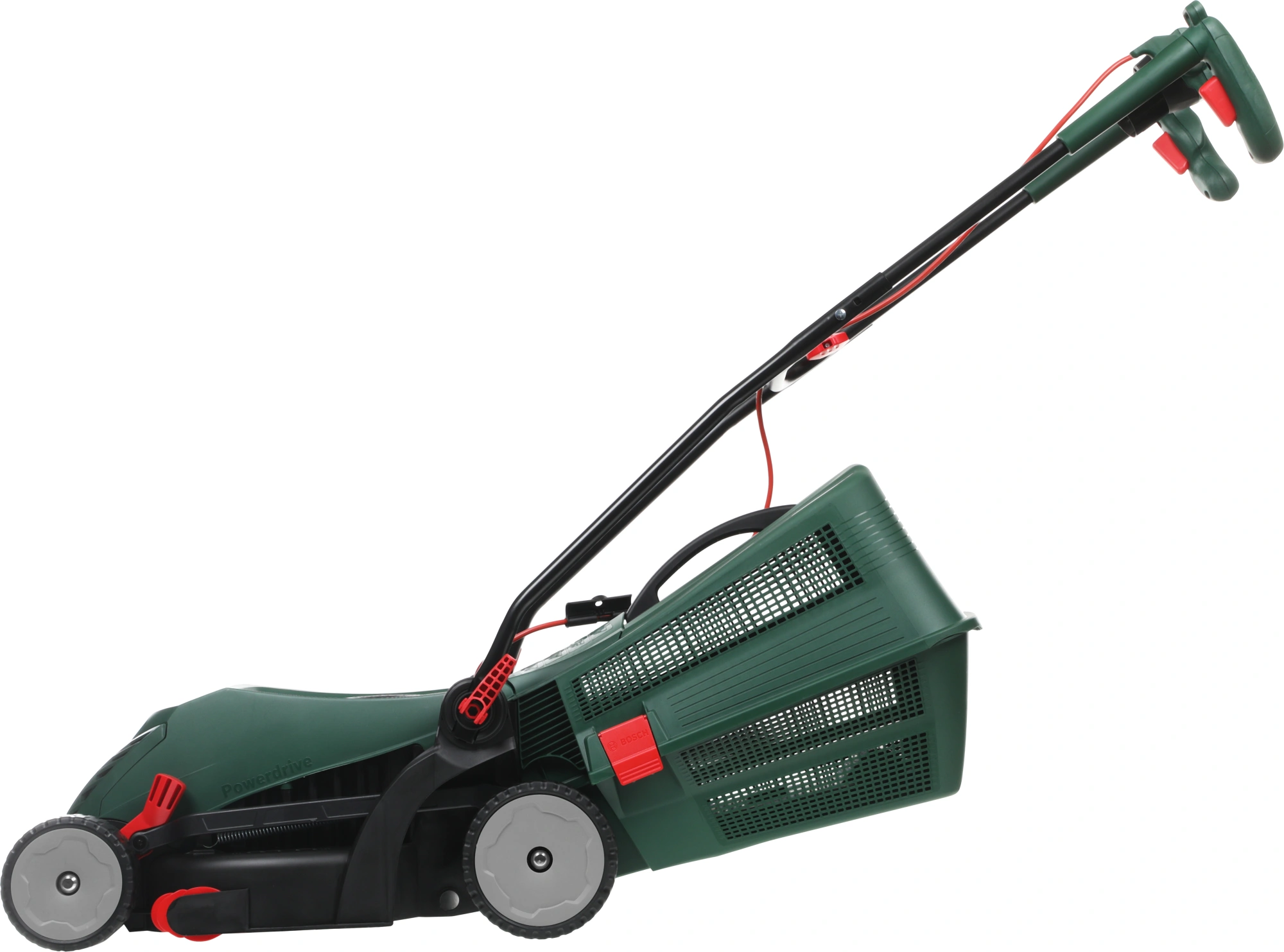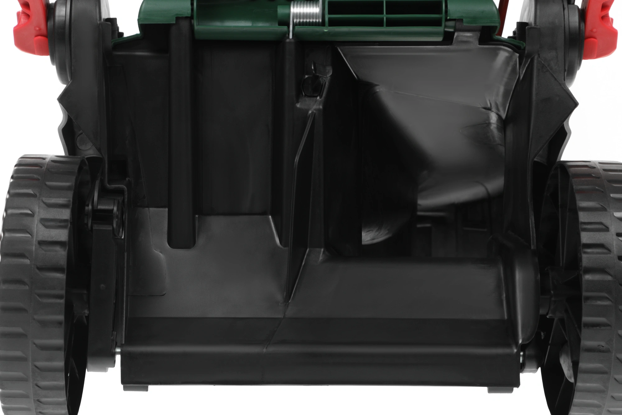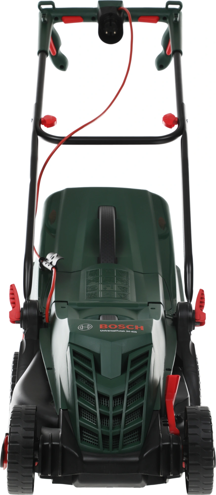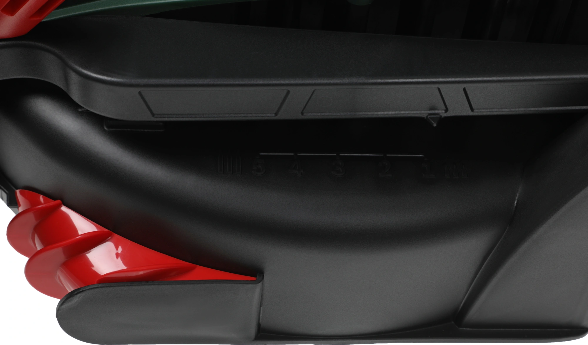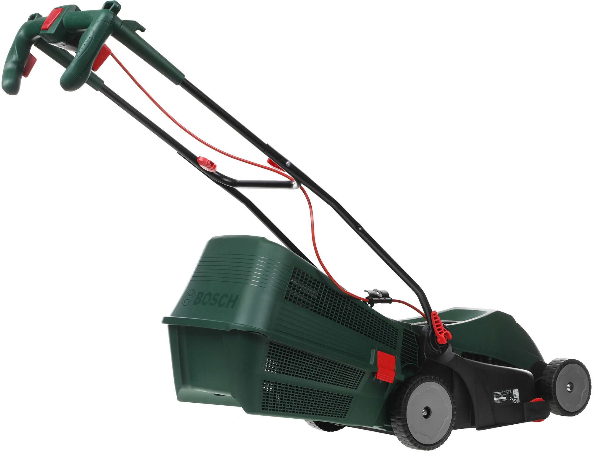 защита от перегрузок, регулировка высоты скашивания, ручки для транспортировки, складная ручка