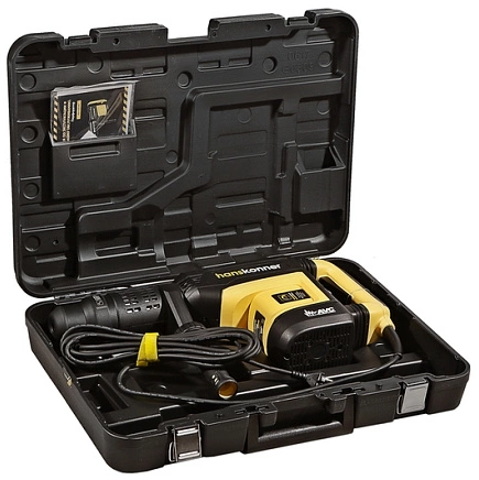 Перфоратор, угольная щетка - 1 комплект, смазка для хвостовиков буров, инструкция по эксплуатации, кейс.