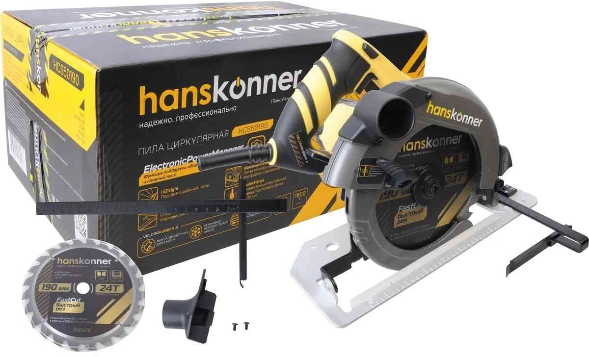 Пила циркулярная, параллельный упор, шестигранный ключ, винты (2 шт.), пильный диск, адаптер для подключения пылесоса.
