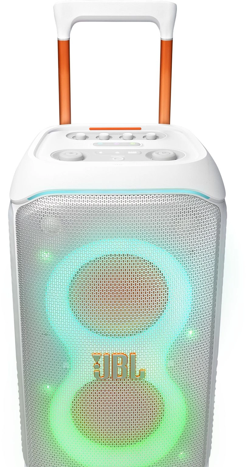 многоточечное подключение, поддержка Auracast, усиление звука с помощью искусственного интеллекта, защита от воды IPX4, встроенные колёса, телескопическая ручка,