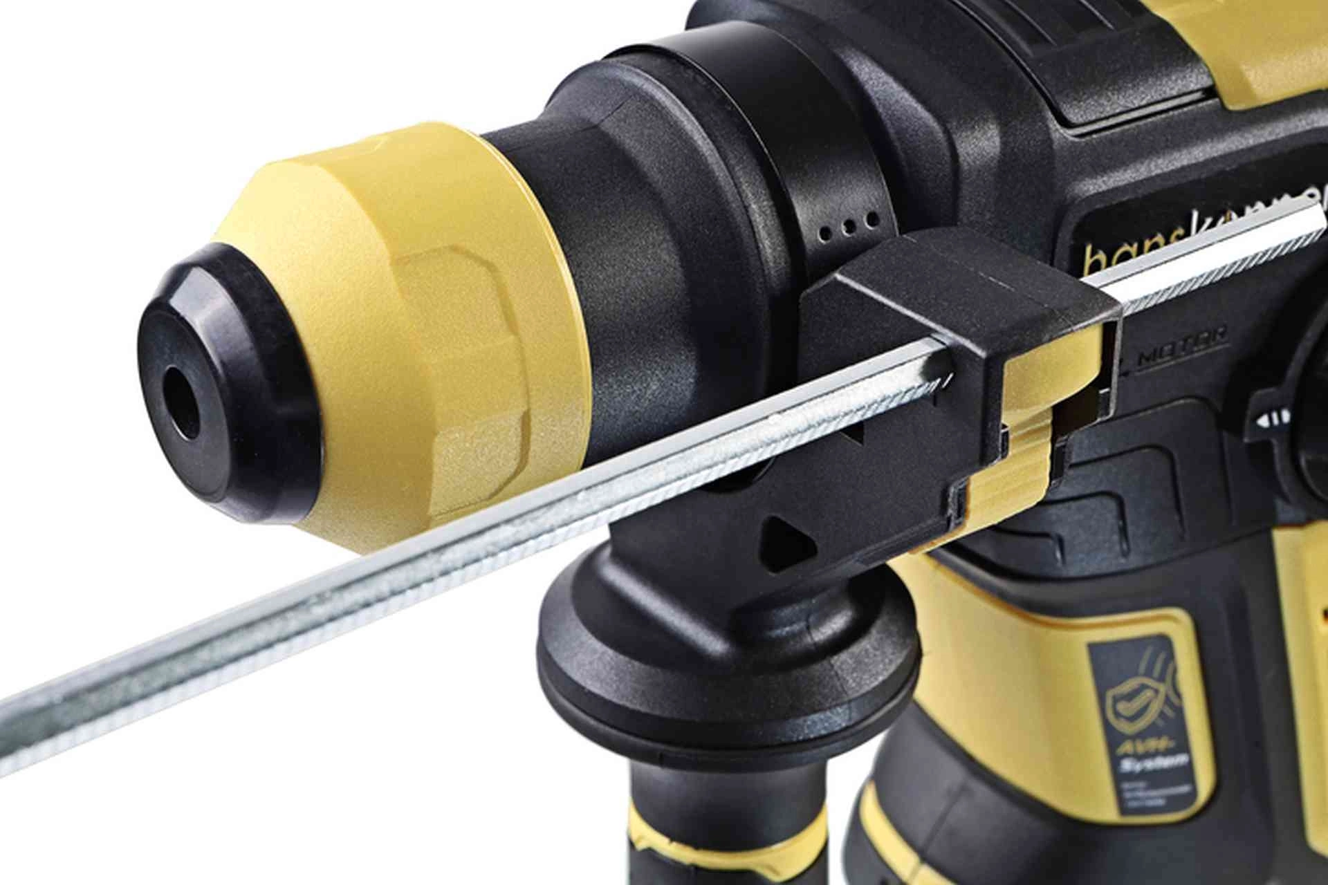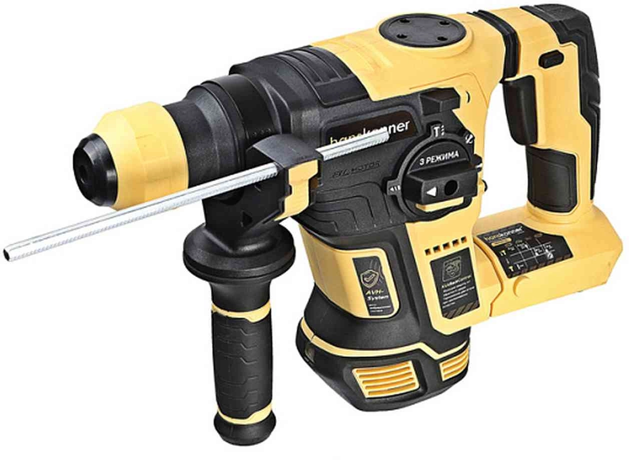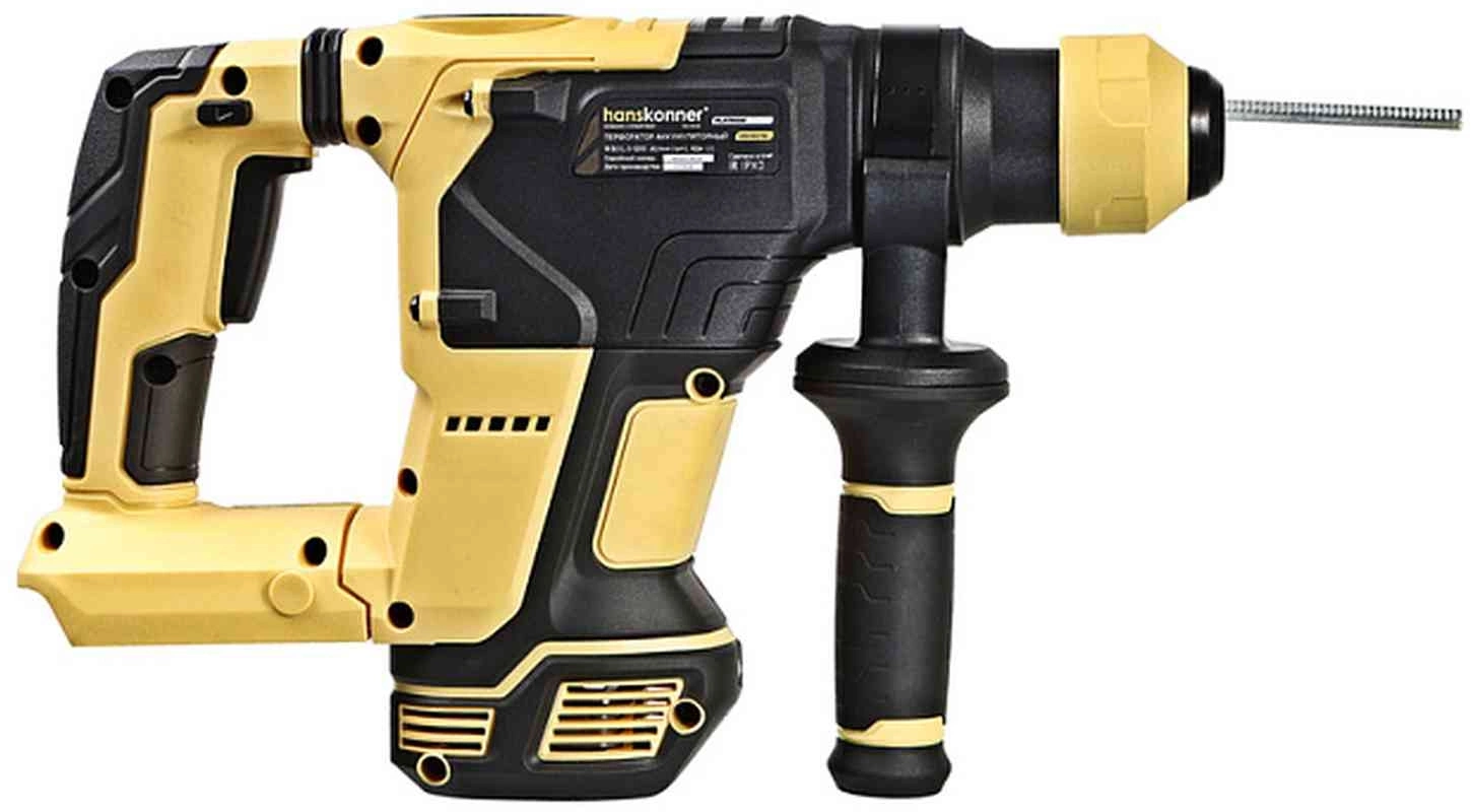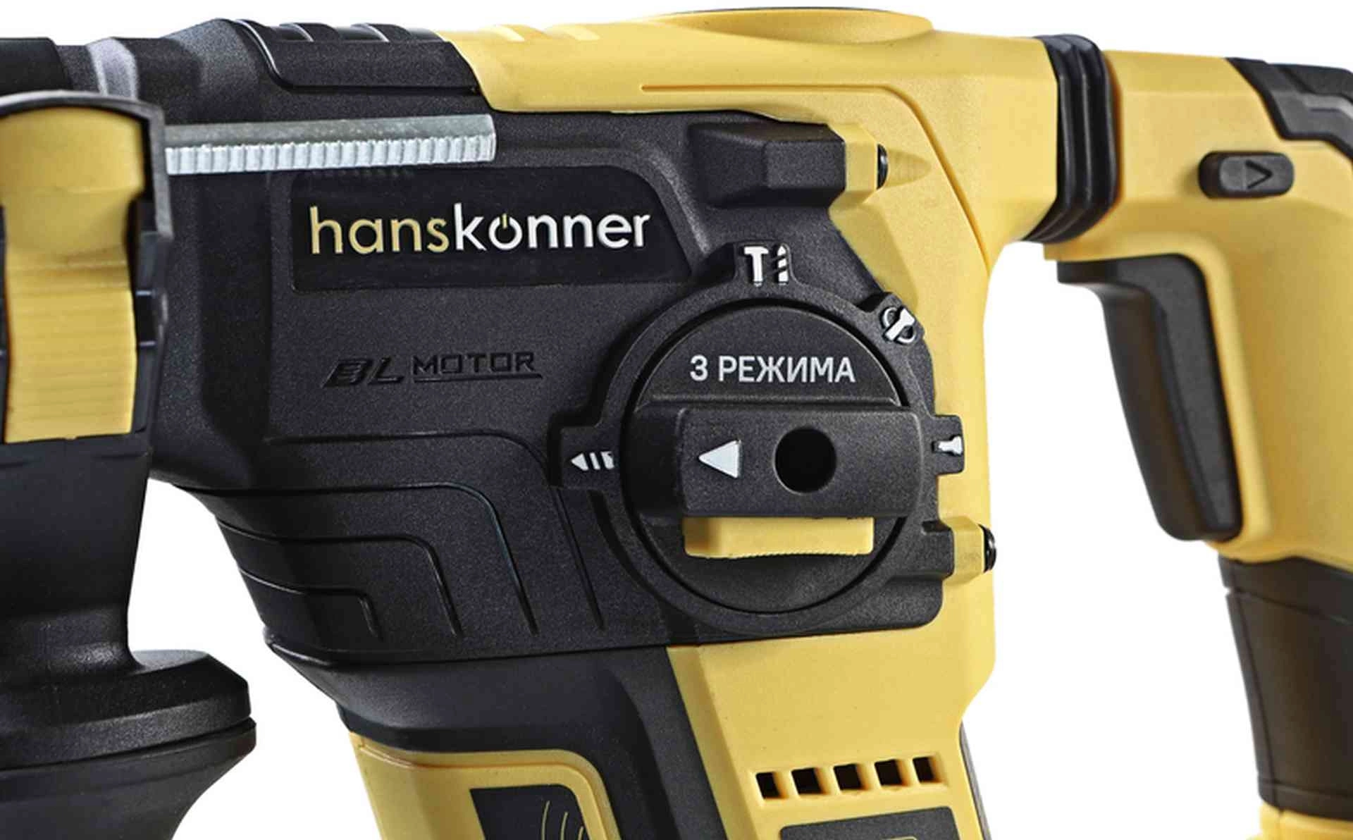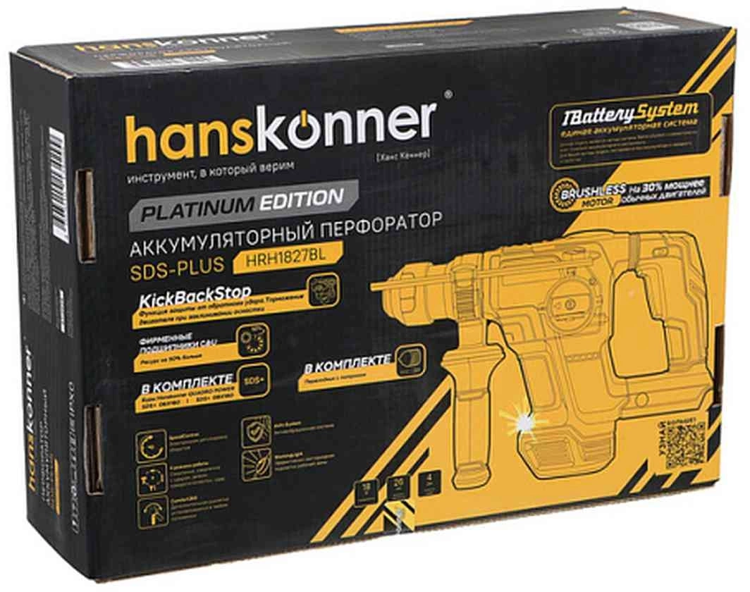 Активная антивибрационная система AVH-System; KickBackControl -функция защиты от обратного удара за счет торможения двигателя при заклинивании оснастки; LED- подсветка рабочей зоны; Комплектуется 2-мя бурами Hanskonner QUADRO POWER SDS+ 06X160,SDS+ 08X160 и сверлильным патроном с адаптером
