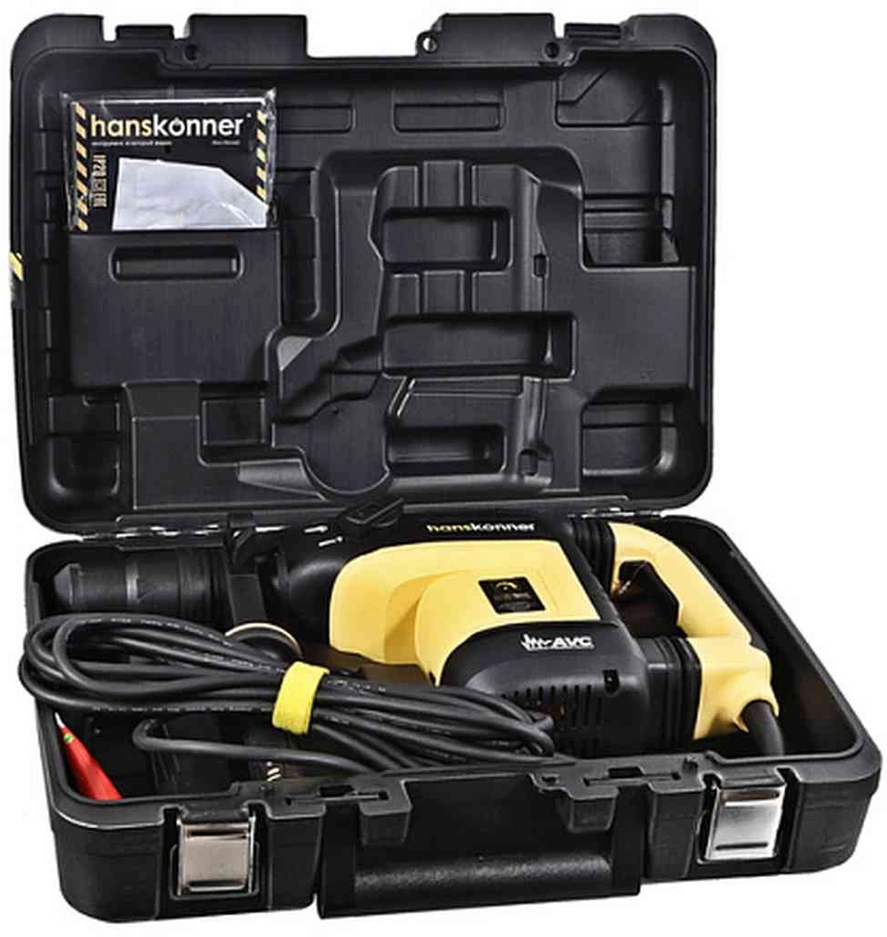 Перфоратор, угольная щётка - 1 комплект., смазка, ограничитель глубины сверления, инструкция по эксплуатации, кейс.