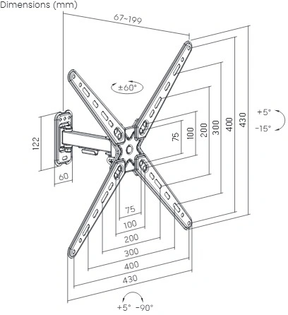 черный 13"-43" макс.20кг настенный поворот и накло...