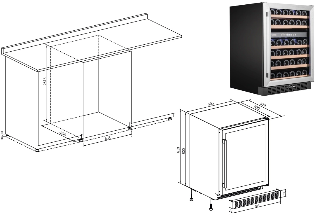 УФ-фильтр стекло; Угольный фильтр. Две температурные зоны 5-12°С, 12-20°С