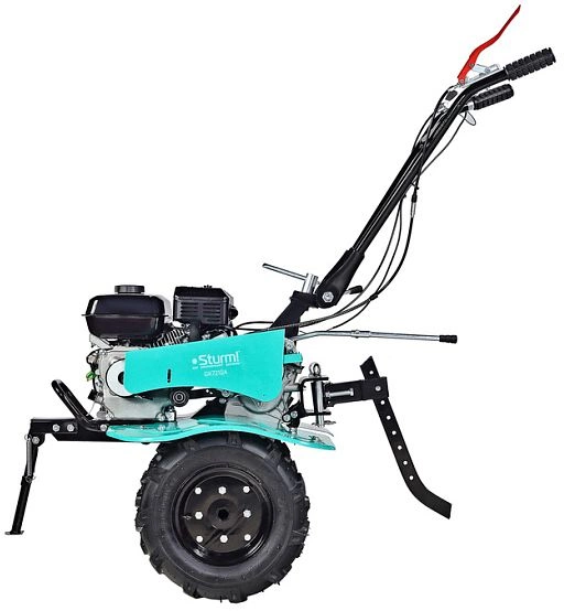 мотоблок, колеса, набор фрез, сцепка, сошник, передняя стойка, крылья, набор крепежа, набор инструментов, инструкция.