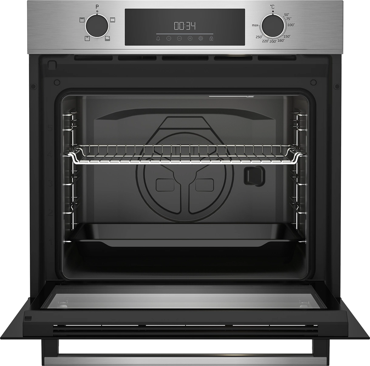 Белый LED дисплей. Сенсорная панель управления Touch Control. 5 уровней для противней. Съемные направляющие для противней. Стандартный противень +1 решетка. Принудительное охлаждение.