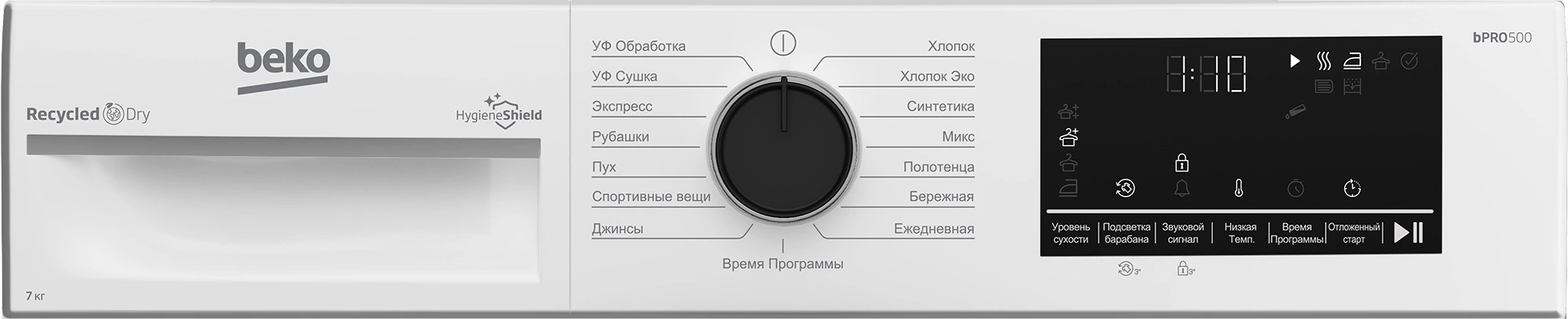 Хлопок, хлопок эко, синтетика, микс, полотенца, бережная, ежедневная, программы, джинсы, верхняя одежда/спортивная одежда, пуховые изделия, рубашки 30', экспресс 14 мин, УФ обработка, УФ сушка