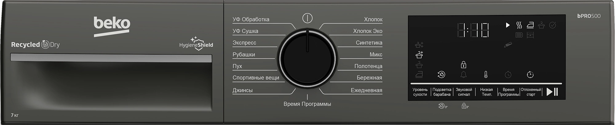 Хлопок, хлопок эко, синтетика, микс, полотенца, бережная, ежедневная, программы, джинсы, верхняя одежда/спортивная одежда, пуховые изделия, рубашки 30', экспресс 14 мин, УФ обработка, УФ сушка