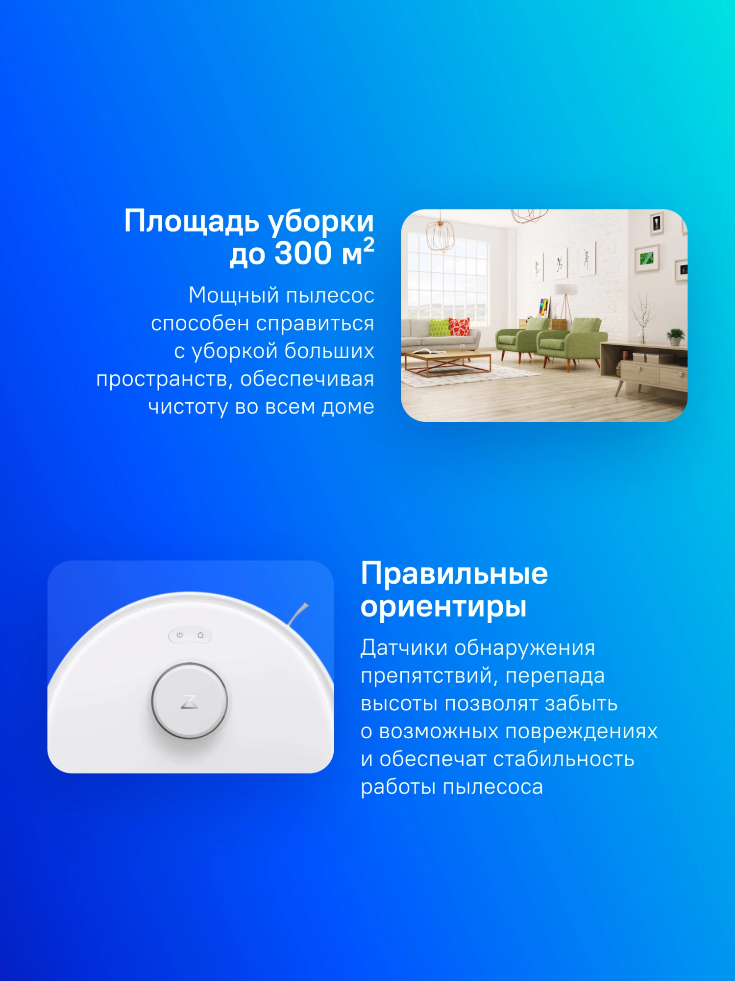 автоматический поиск зарядного устройства, построение карты помещения, управление со смартфона
