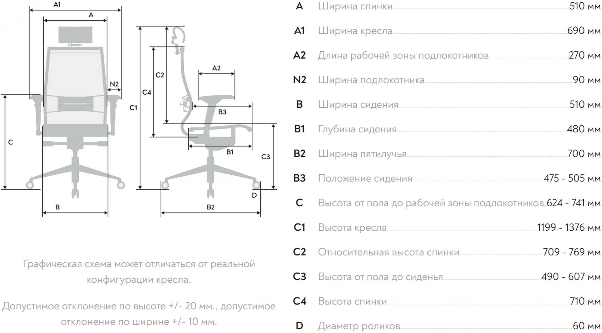 высоты (газлифт), высоты подголовника, высоты сиденья (без спинки), глубины сиденья, жесткости качания, положения подлокотников, поясничной области, угла наклона подголовника