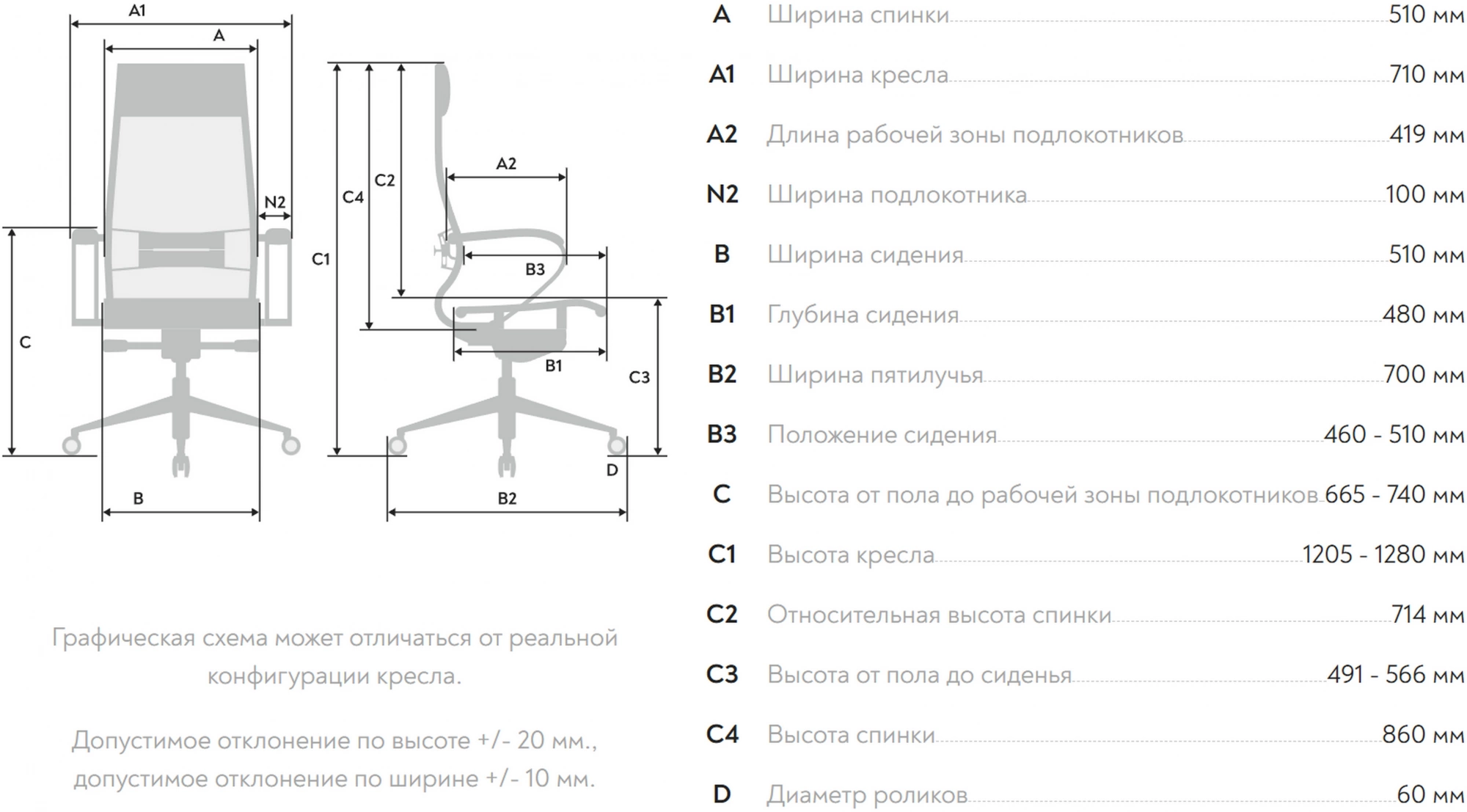 высоты (газлифт), высоты сиденья (без спинки), глубины сиденья, жесткости качания, поясничной области