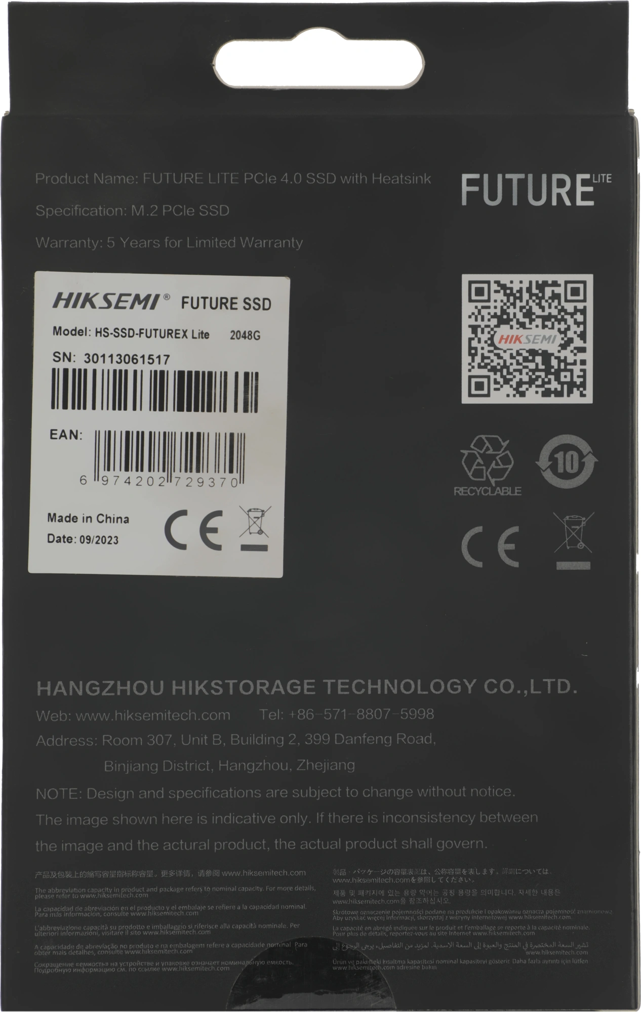 Накопитель SSD Hikvision PCIe 4.0 x4 2TB HS-SSD-FUTUREX LITE 2048G