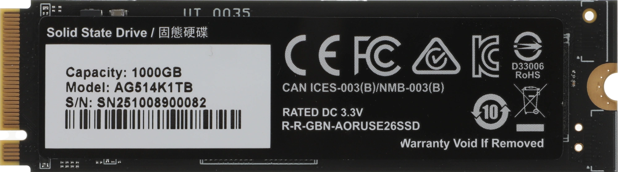 Накопитель SSD Gigabyte PCIe 5.0 x4 1000GB AG514K1TB Aorus Gen5 14000