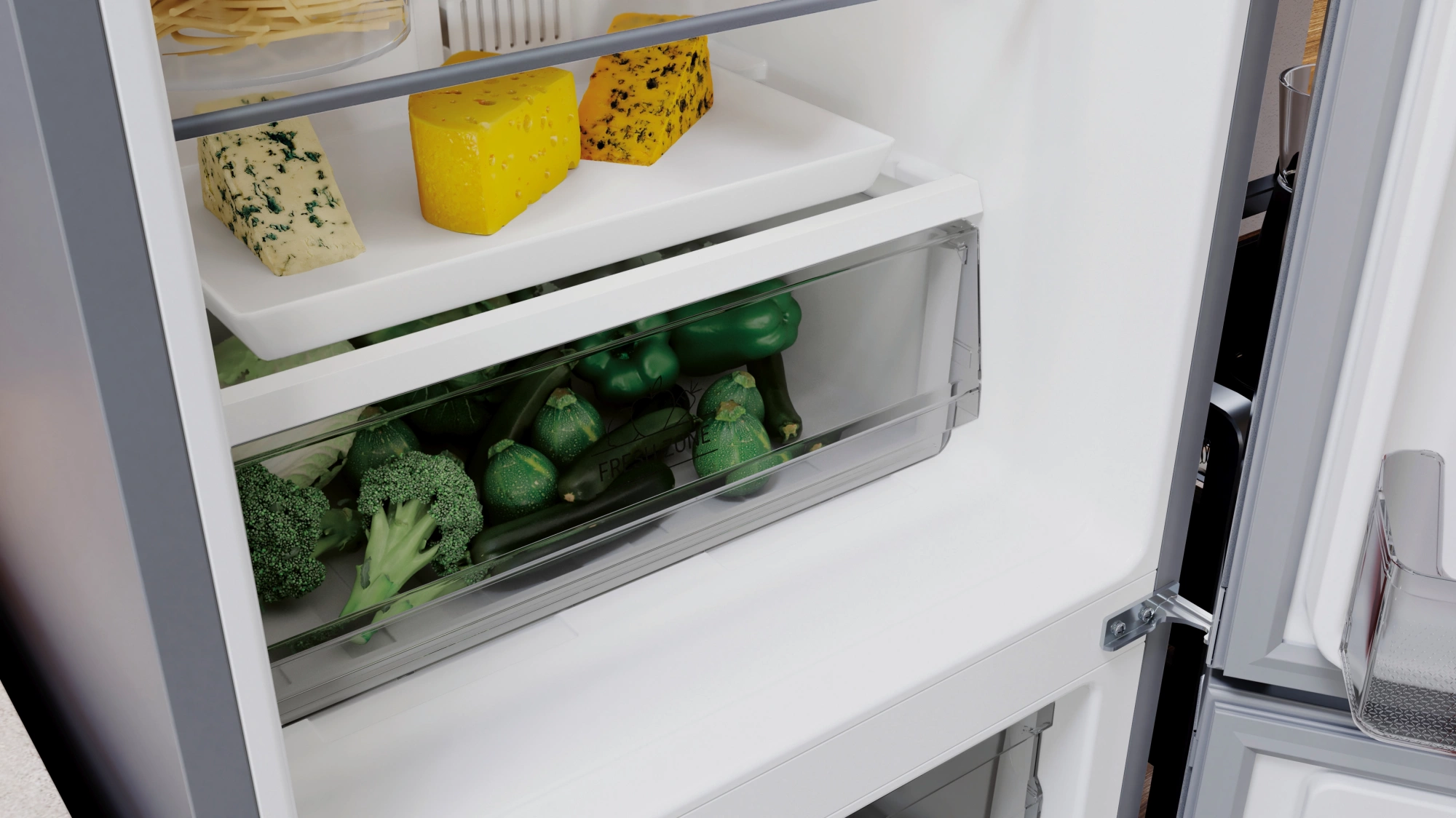 Система охлаждения Total No Frost, эргономичная структура двери, защитный уплотнитель, ящик для овощей и фруктов, фронтальная ручка