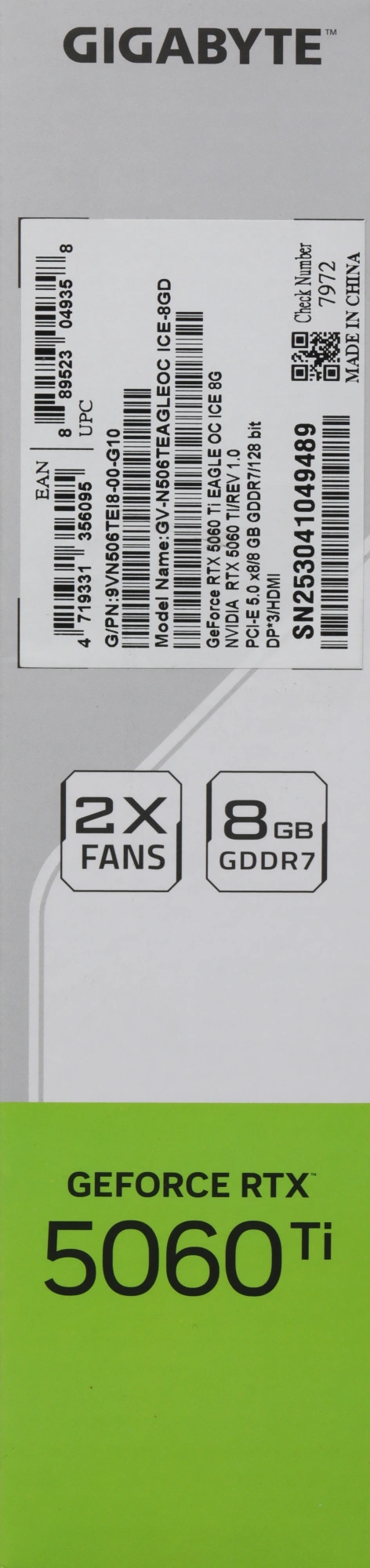 Видеокарта Gigabyte PCI-E 5.0 GV-N506TEAGLEOC ICE-8GD 1.0