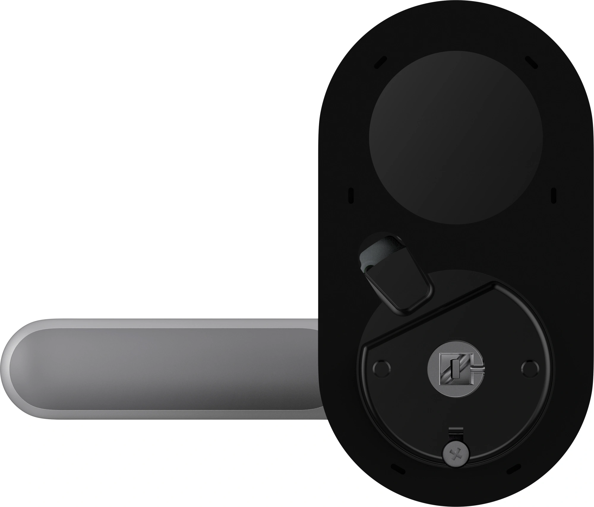 Внешняя панель, внутренняя панель, защелка с накладками, ответная планка (комплект), шаблон для монтажа, AA батареи - 4 шт., механический ключ - 2 шт., комплект для монтажа (винты, вал, кронштейн), руководство пользователя.